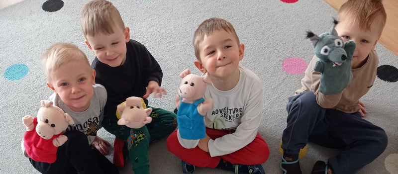 Realizując temat kompleksowy "W świecie bajek" przypomnieliśmy sobie treść najpiękniejszych baśni m.in. "Czerwony Kapturek", "Trzy małe świnki", "Jaś i magiczna fasola",