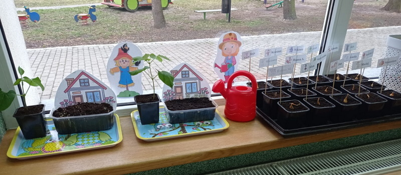W ramach realizacji tematu kompleksowego "Zielony ogródek" dzieci zasadziły cebulę oraz wysiały owies i rzeżuchę.