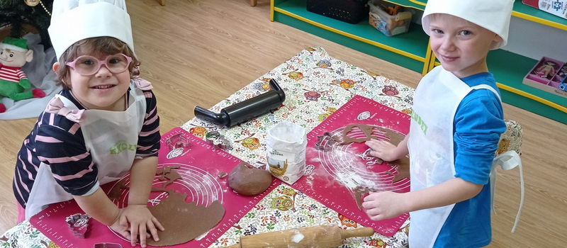 Przedszkolaki zgodnie z przedświąteczną tradycją piekły oraz ozdabiały świąteczne pierniczki.