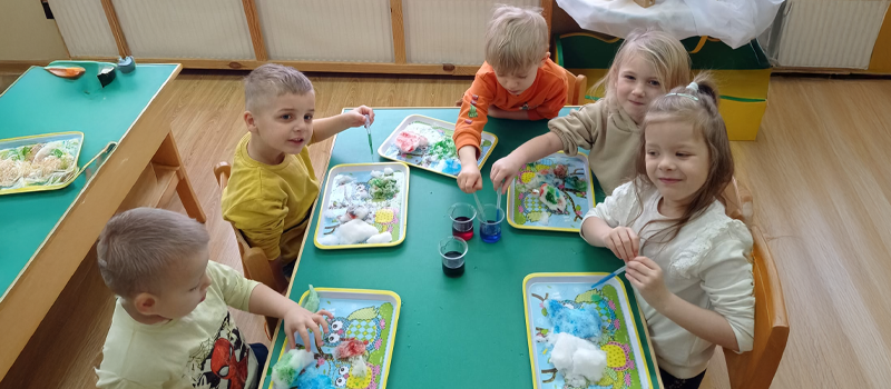 Realizując temat kompleksowy "Bezpieczne zabawy na śniegu" przedszkolaki przypomniały sobie zasady bezpieczeństwa podczas zabaw na śniegu,