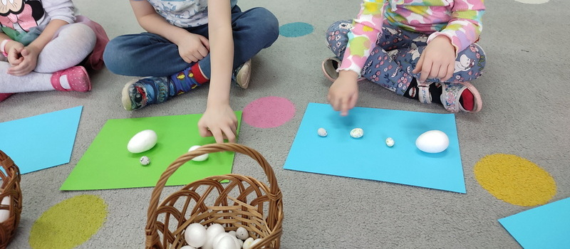 Lubimy zabawy poszukiwawcze, a Wielkanoc zachęca do przeszukiwania zakamarków i znajdowania kolorowych pisanek. Jest to również okazja do nauki liczenia do 3.