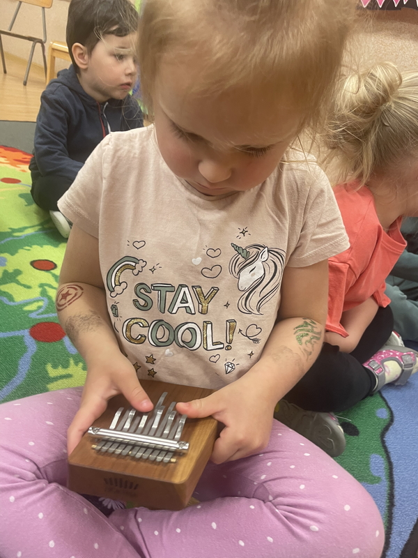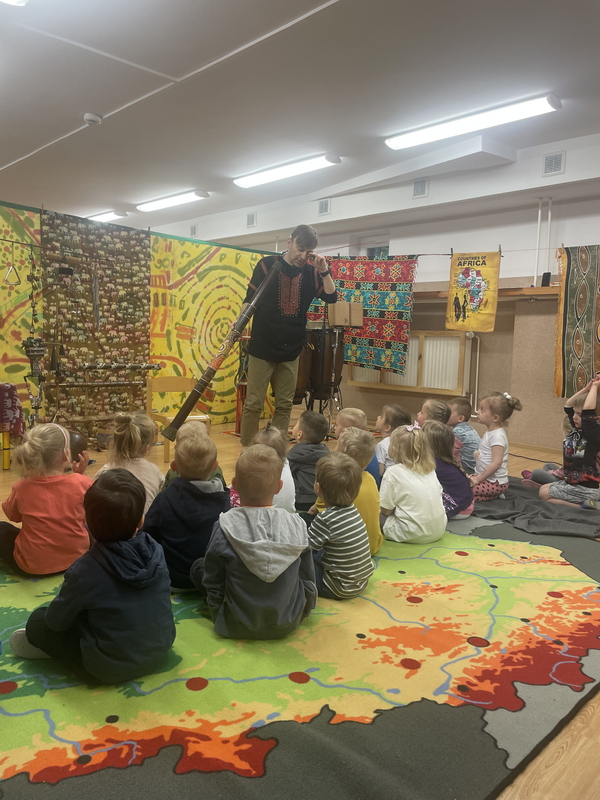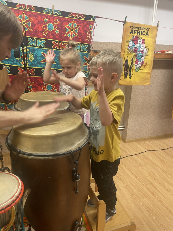 Grupa 3-latków wzięła udział w warsztatach pt. „Pokaz muzyki etnicznej” dzieci miały okazje podziwiać różne instrumenty oraz posłuchać instrumentów, których odgłosy przypominały odgłosy natury. 🐦🪶
