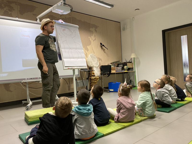 Wyjazd do Ekoinicjatywy, gdzie mogliśmy uczestniczyć w zajęciach o owadach prowadzonych przez Pana Adama. Dowiedzieliśmy się wielu ciekawych rzeczy oraz mieliśmy okazję zobaczyć owady z bliska.