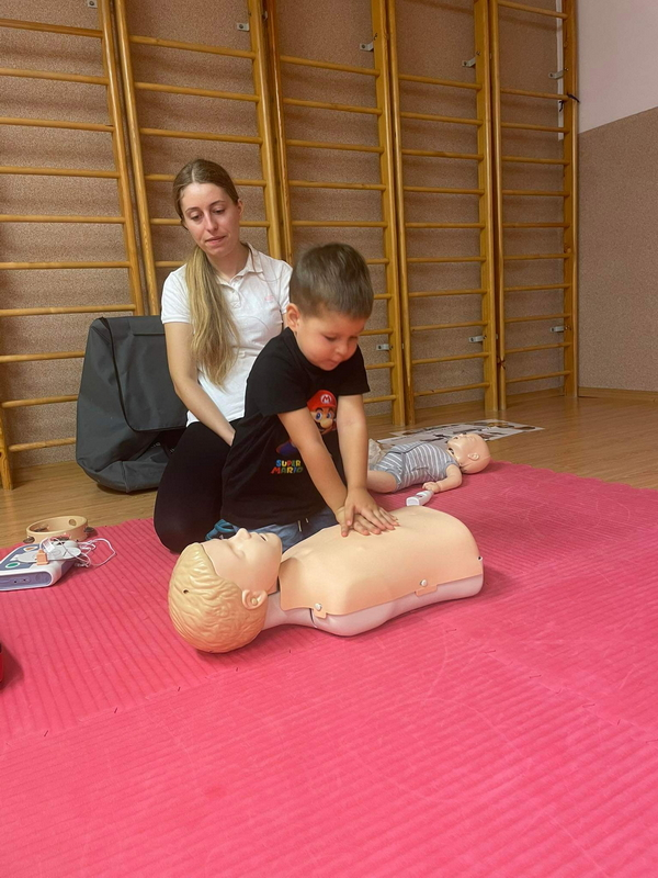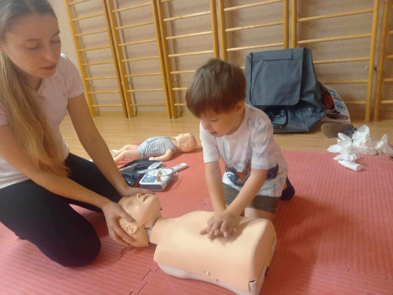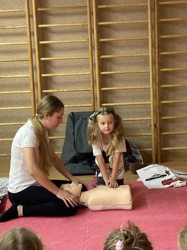 Z okazji międzynarodowego dnia pierwszej pomocy pod czujnym okiem Pani Asi Kalinowskiej dzieci miały okazję nauczyć się, jak udziela się pierwszej pomocy przed medycznej, wielu z nich robiło to pierwszy raz, dzieci starały się z całych sił i wykonywały czynności w miarę swoich możliwości 😊