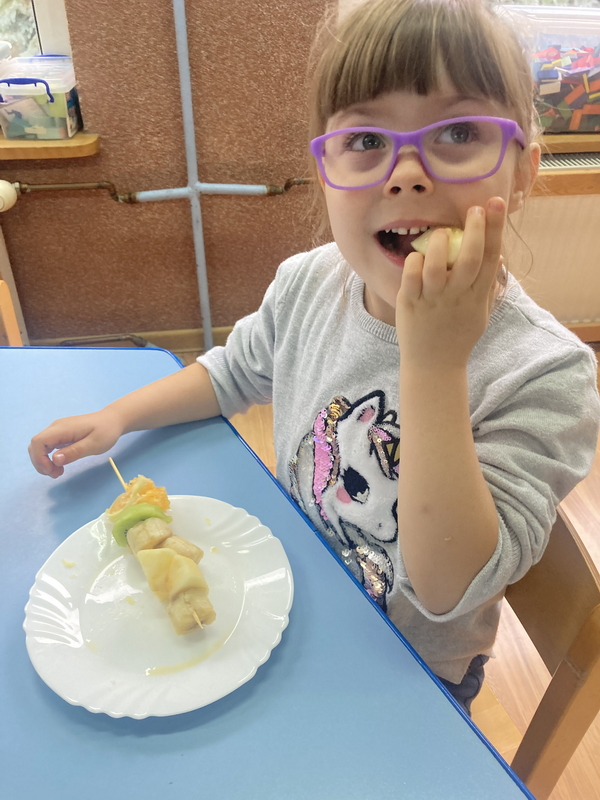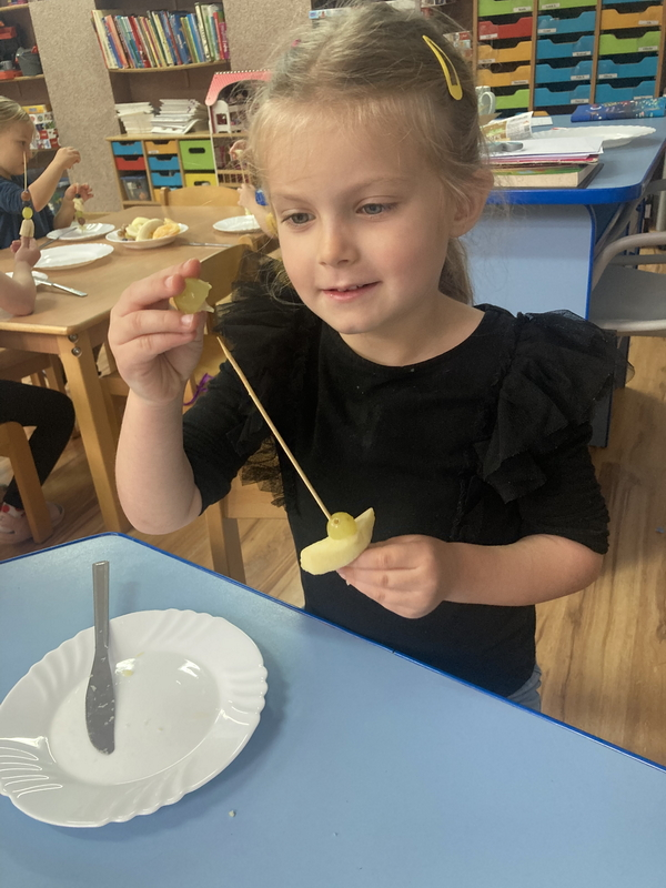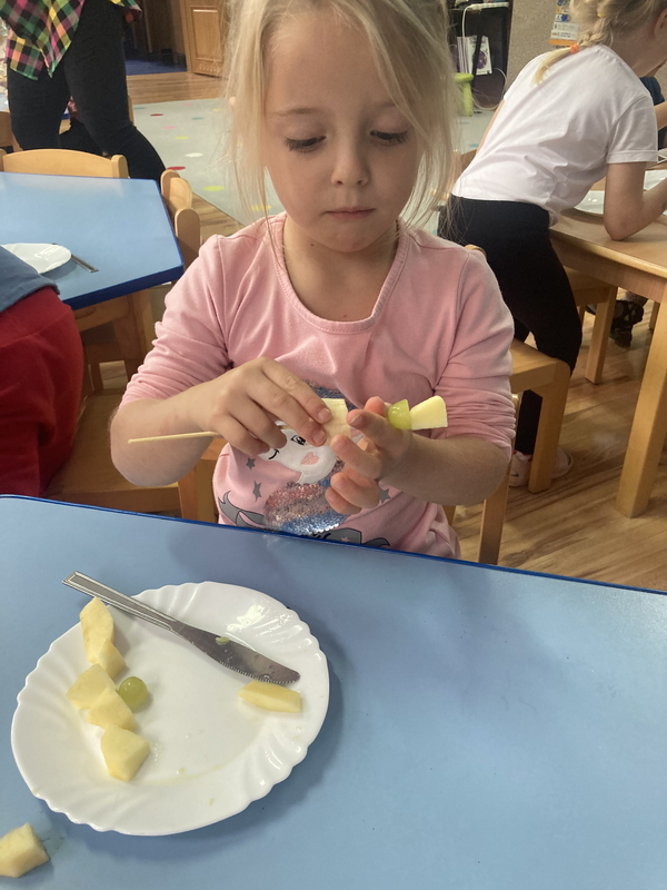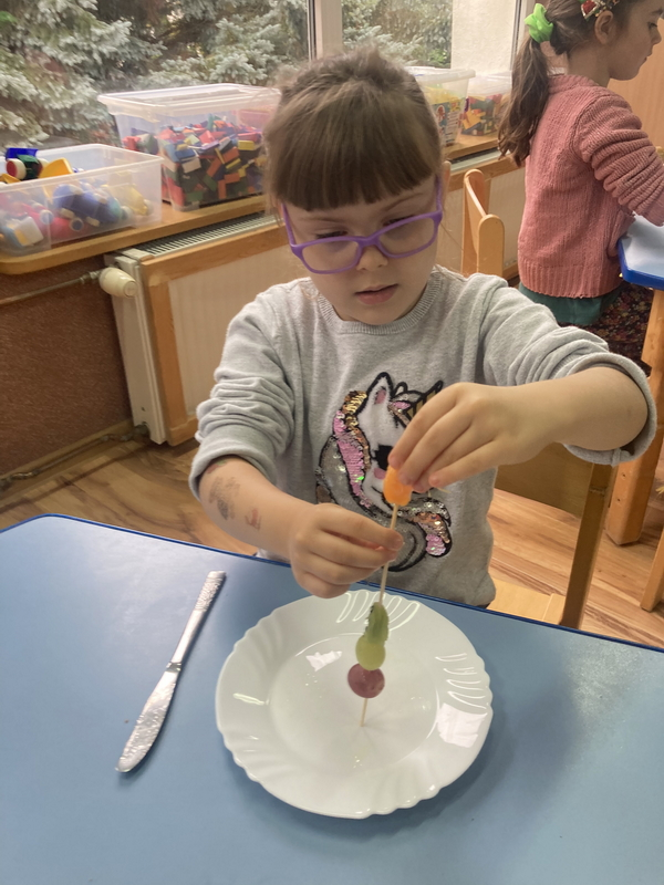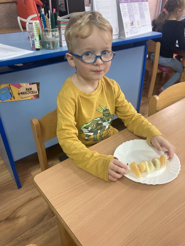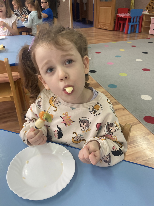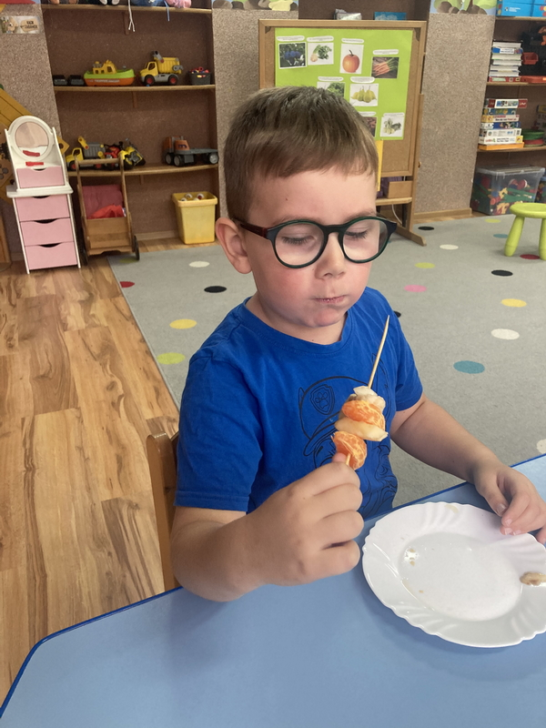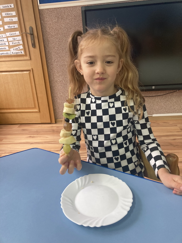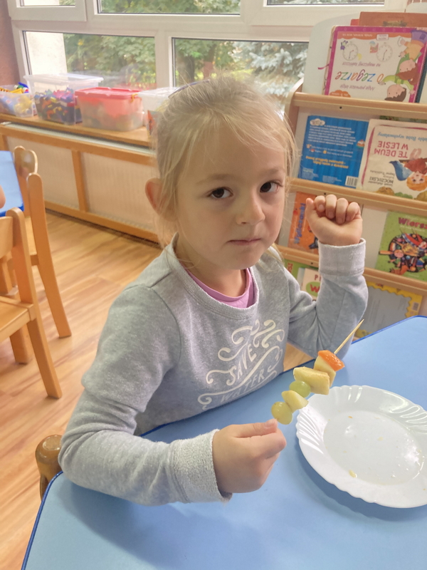 Z okazji międzynarodowego dnia owoców i warzyw dzieci przygotowały pyszne i zdrowe szaszłyki owocowe