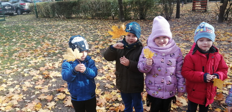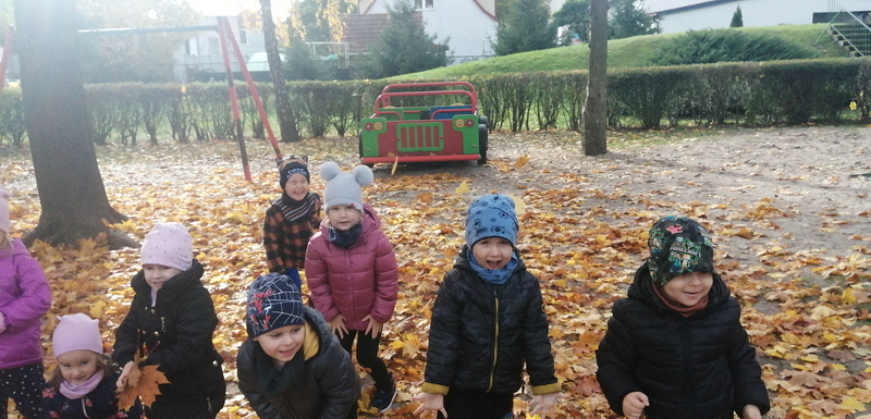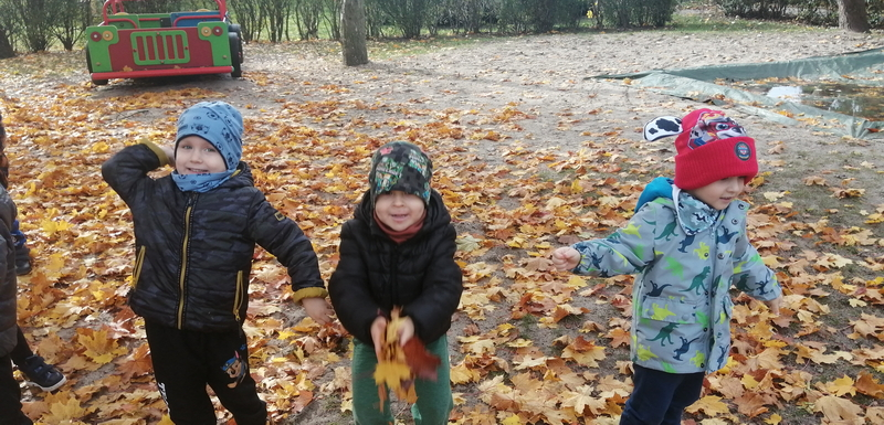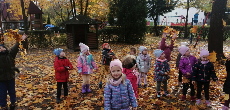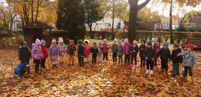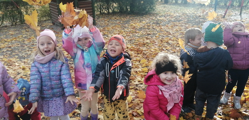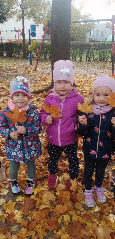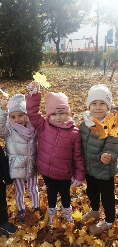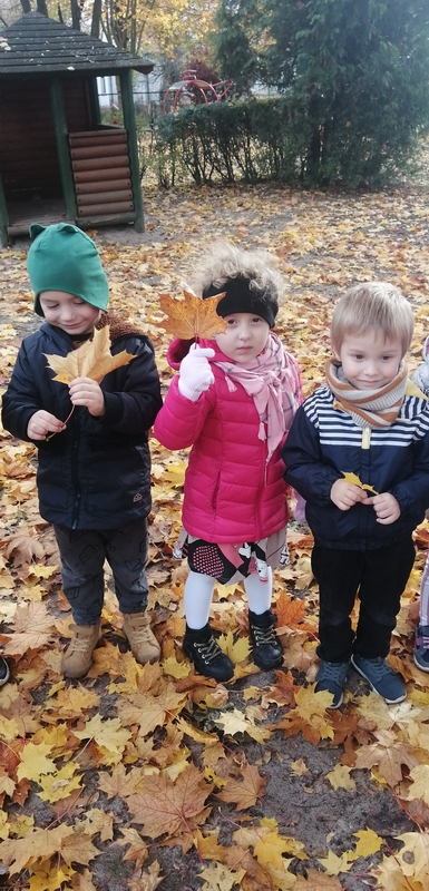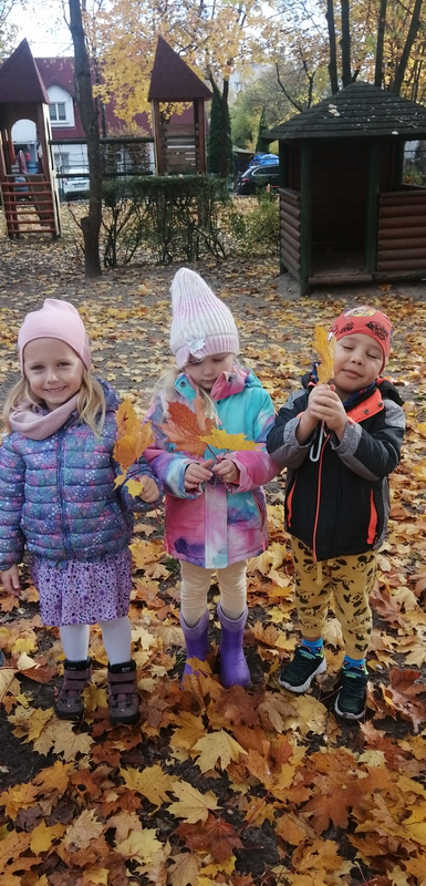 Piękna, słoneczna pogoda towarzyszyła nam podczas dzisiejszego spaceru. Wiele radości sprawiła nam zabawa pod barwnymi klonami.
