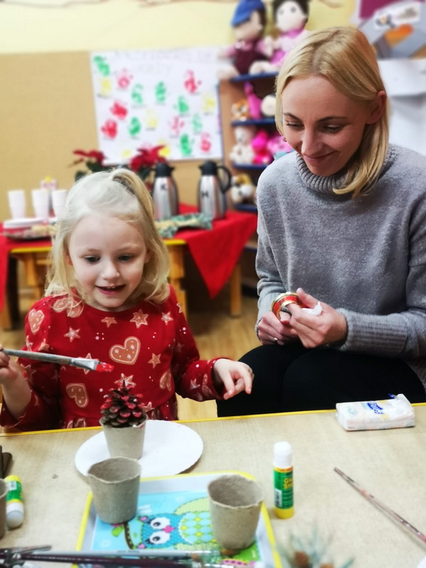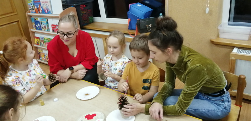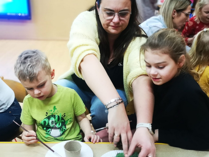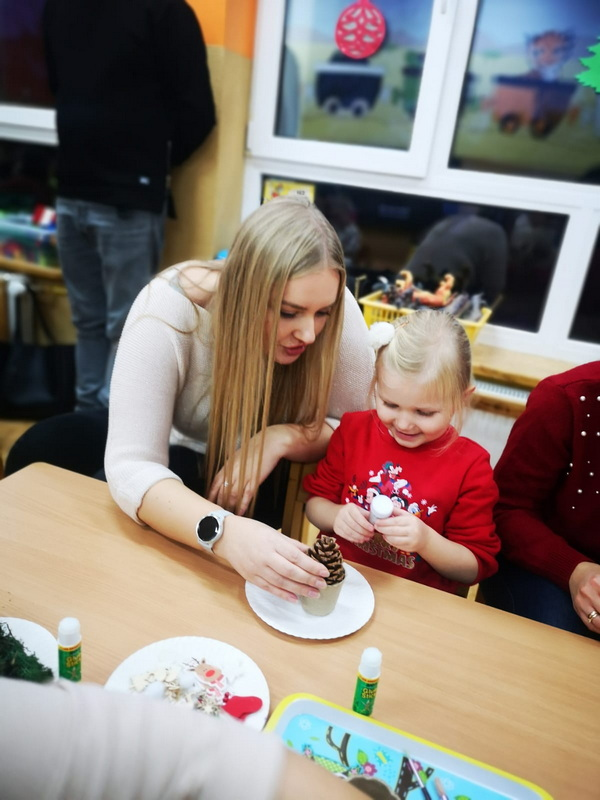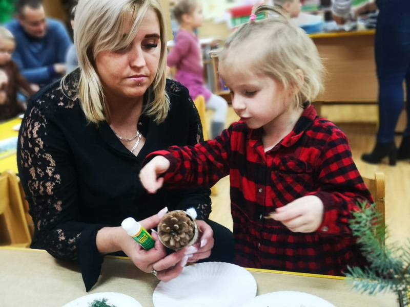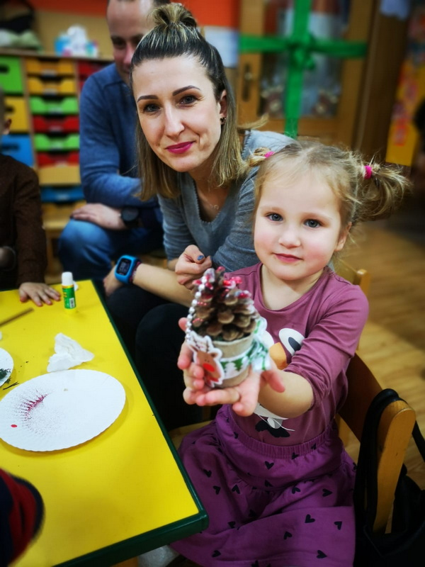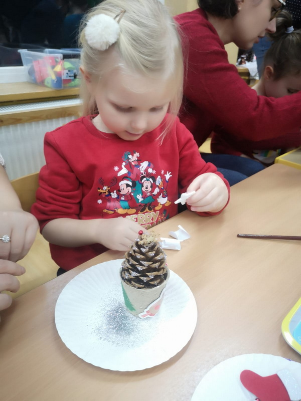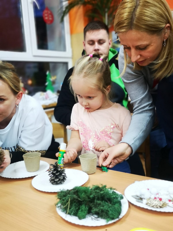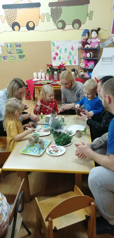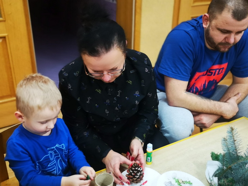 W dniu dzisiejszym odbyły się warsztaty podczas, których rodzice z dziećmi wykonali piękne stroiki świąteczne.