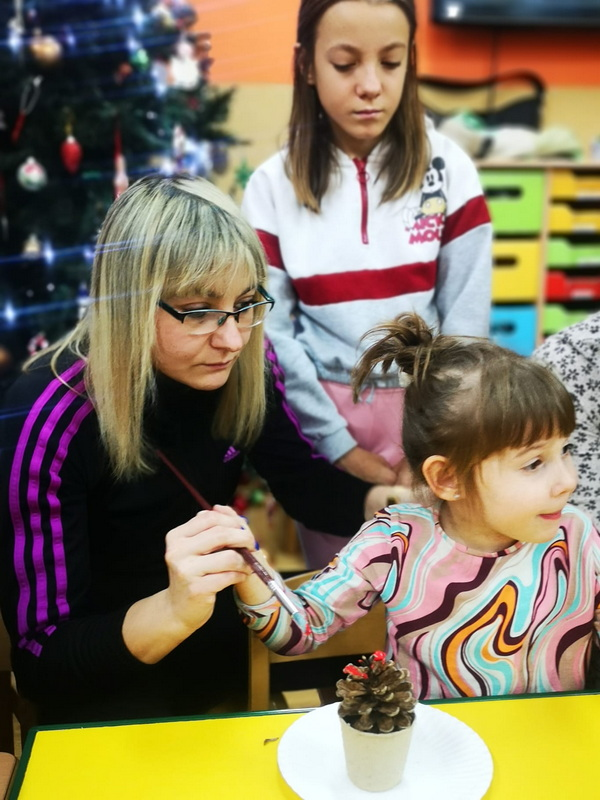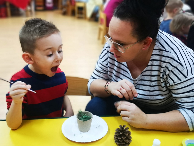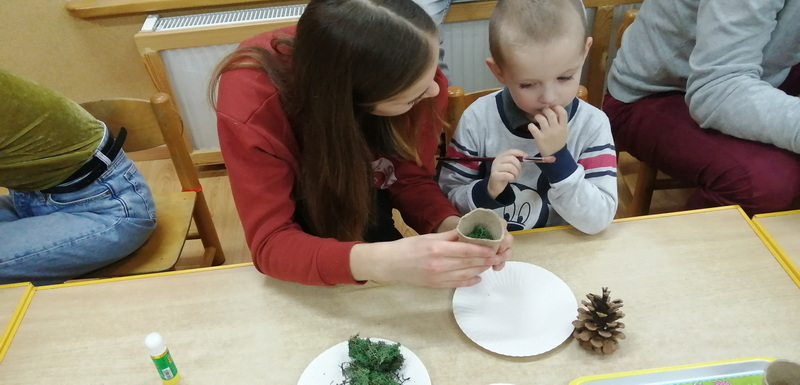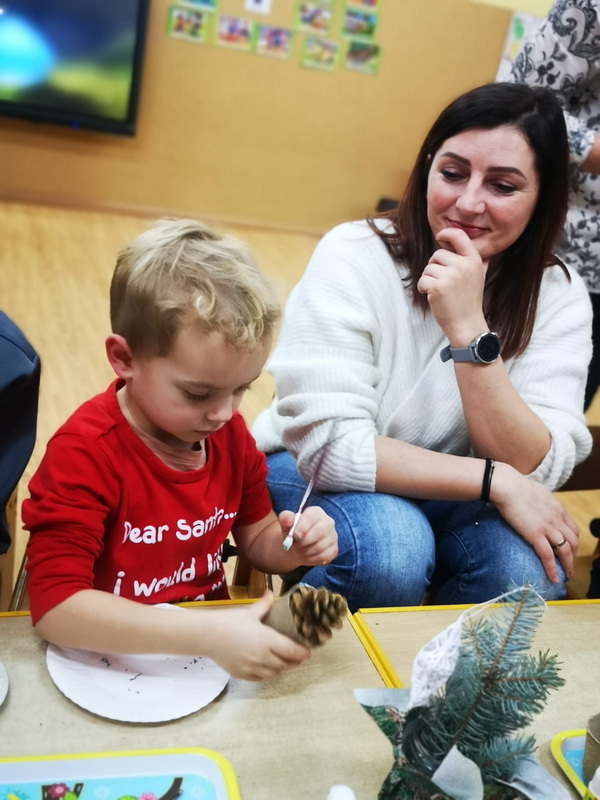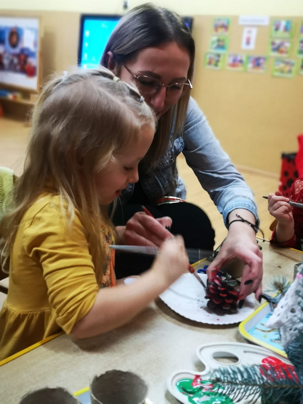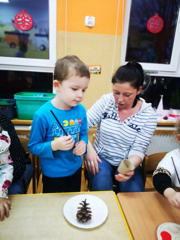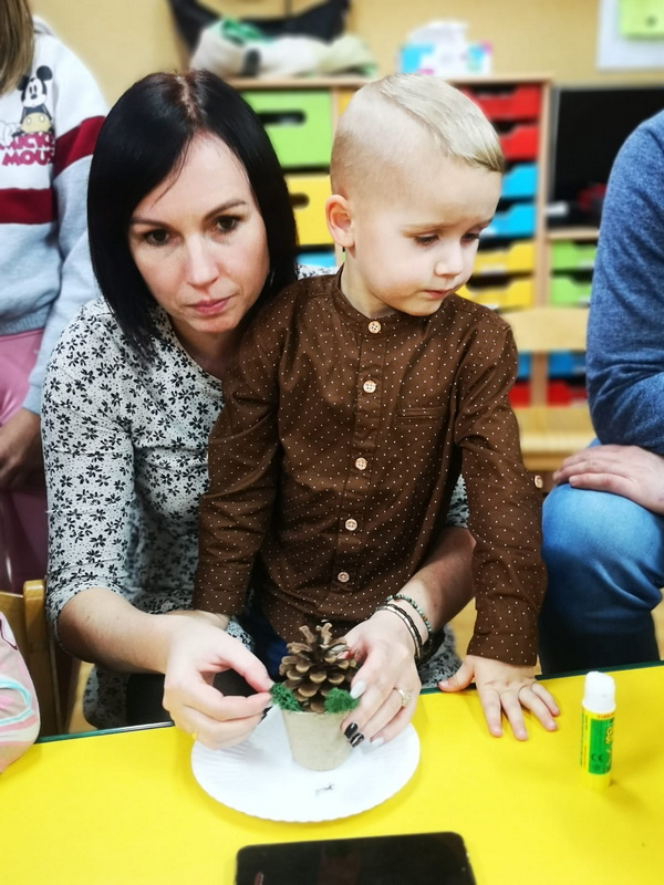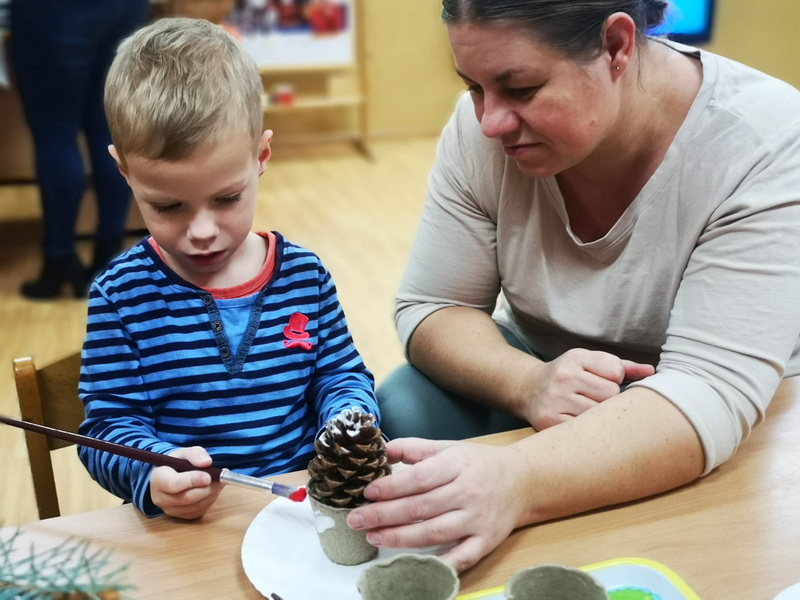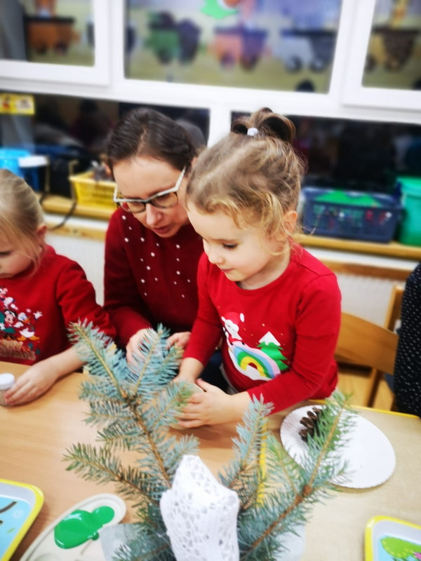 W dniu dzisiejszym odbyły się warsztaty podczas, których rodzice z dziećmi wykonali piękne stroiki świąteczne.