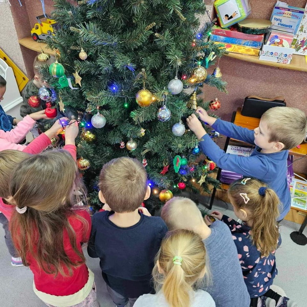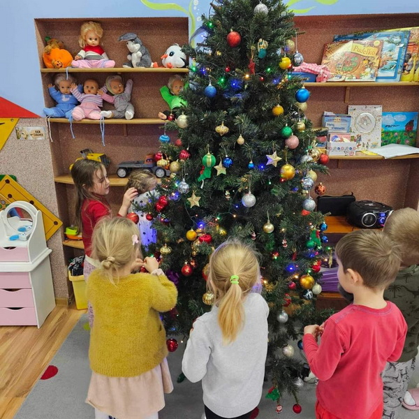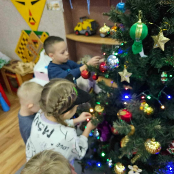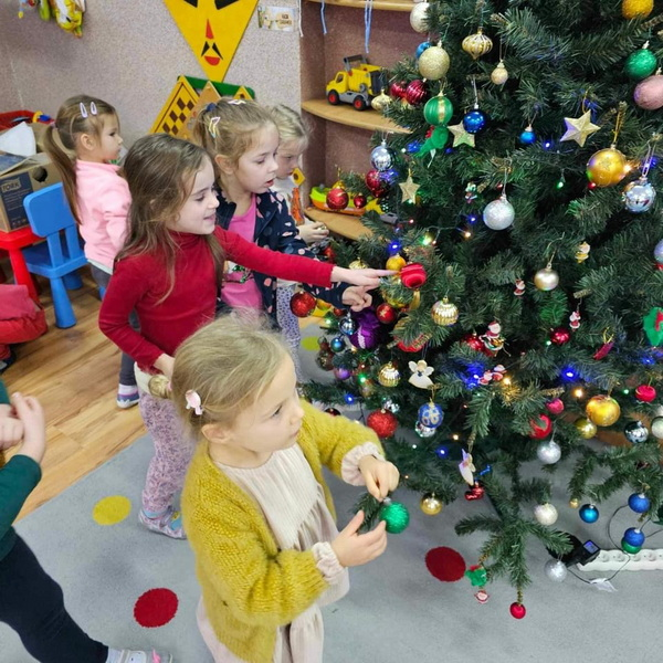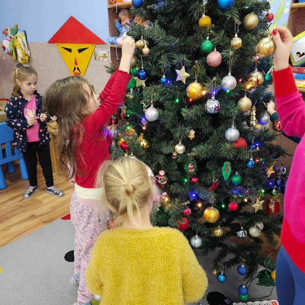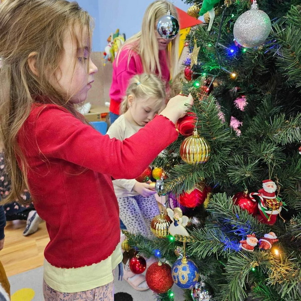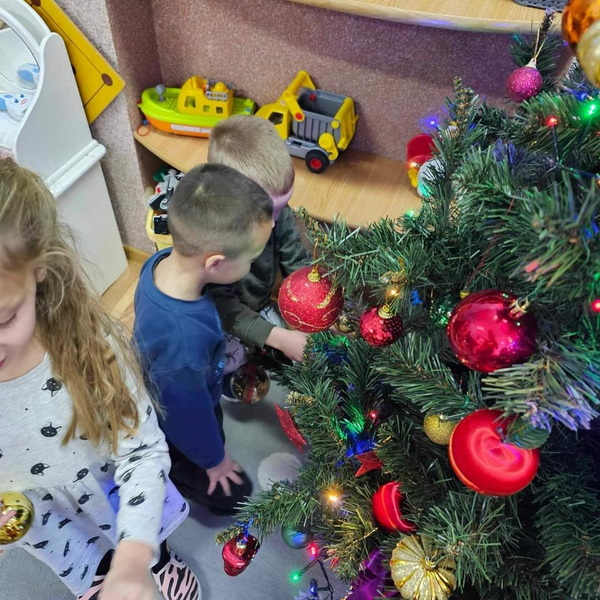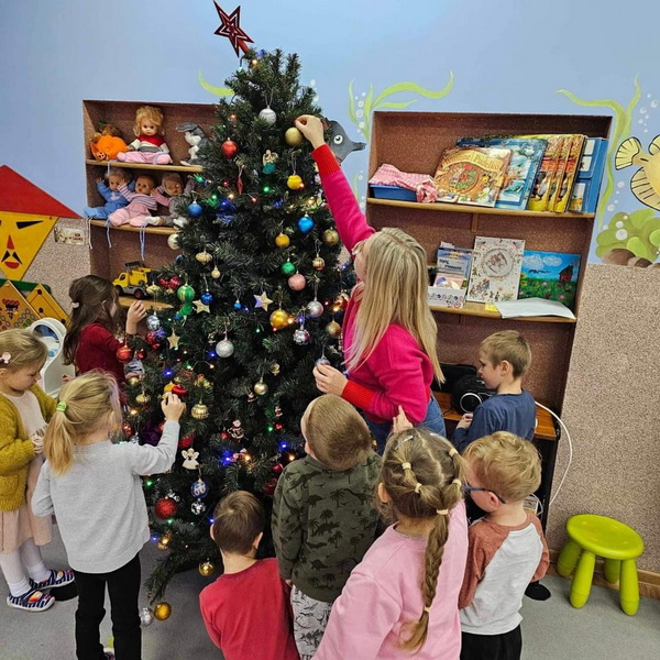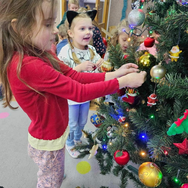 Przygotowań do Świąt ciąg dalszy - tym razem ubieranie choinki w naszej sali.