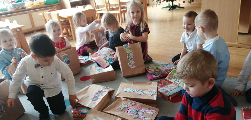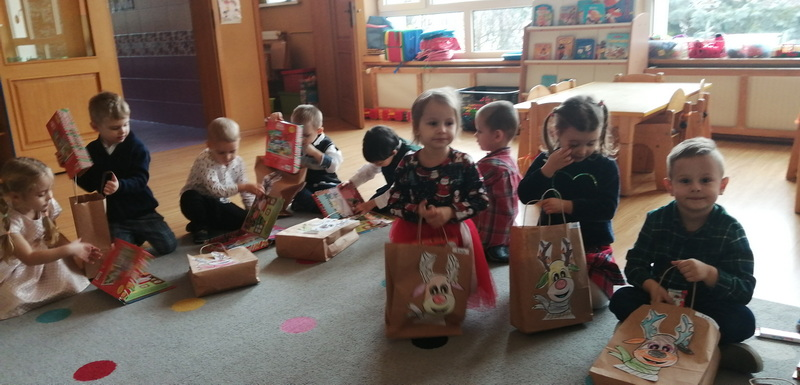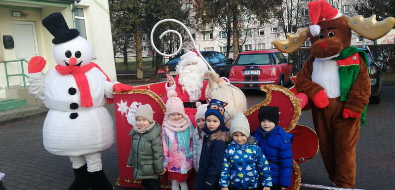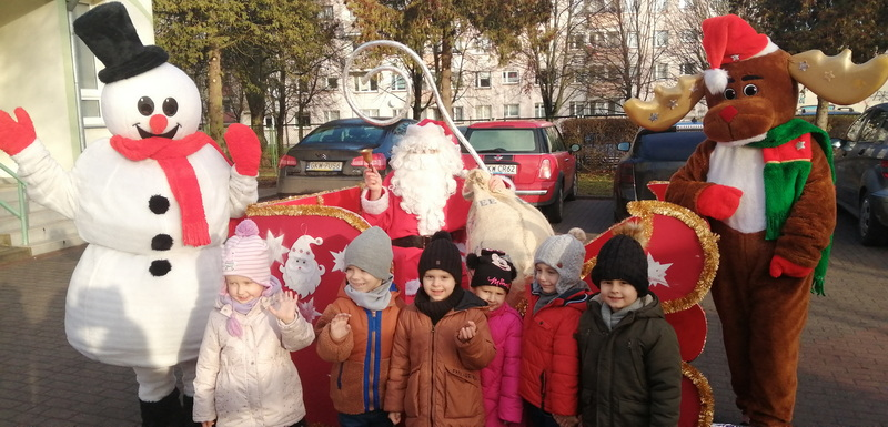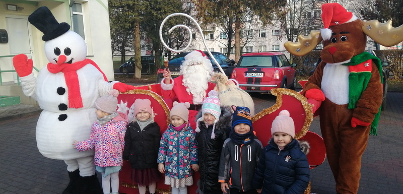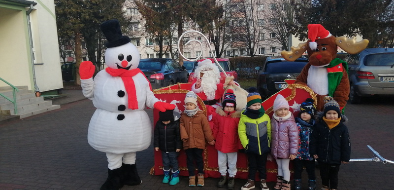 Dzisiejszy dzień był pełen świątecznych wrażenień. Do naszego przedszkola na saniach przybył Mikołaj wraz z pomocnikami.