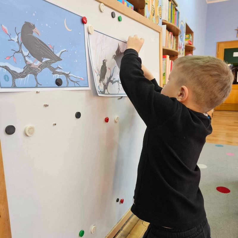 Poniedziałkowe zajęcia z zakresu mowy i myślenia - wysłuchanie opowieści o Gawronku,