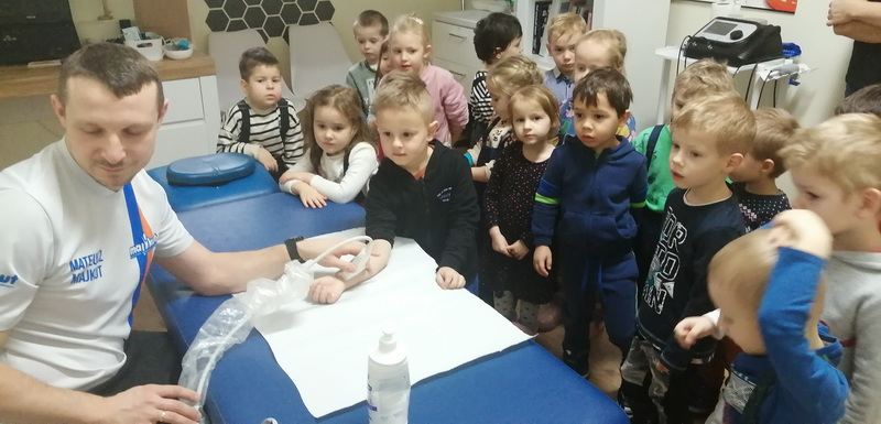 Podczas ciekawych zajęć dowiedzieliśmy się na czym polega praca fizjoterapeuty, oraz z jakich urządzeń korzysta fizjoterapeuta.