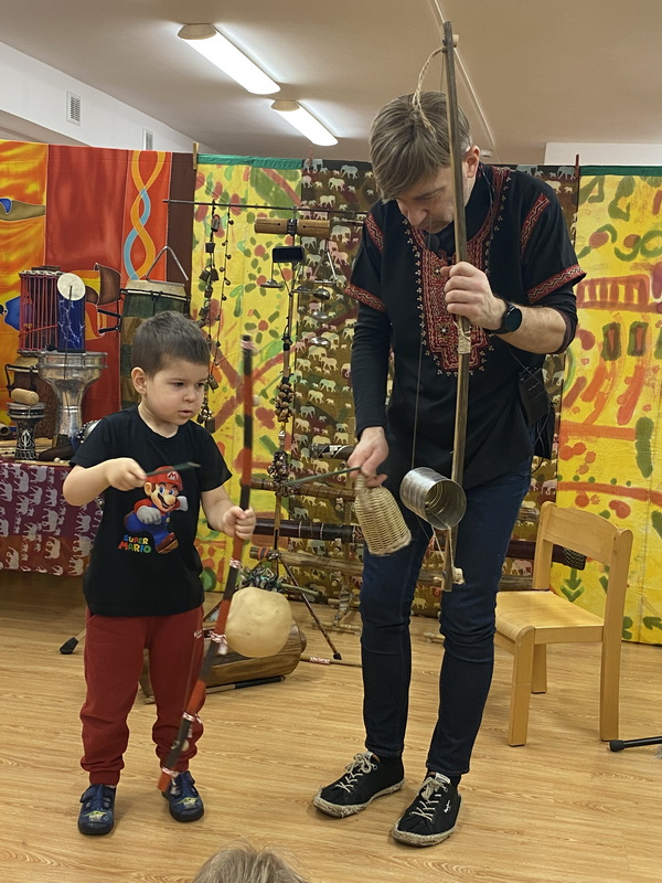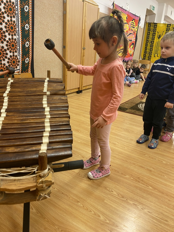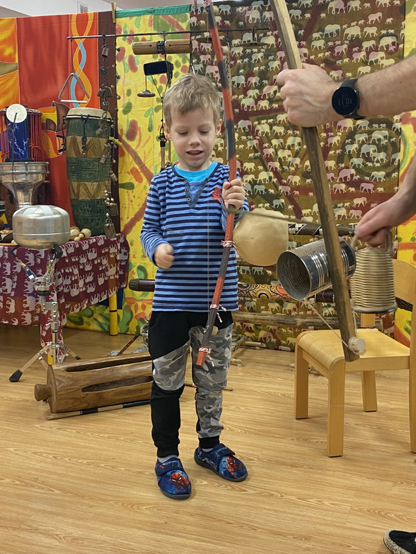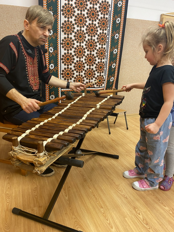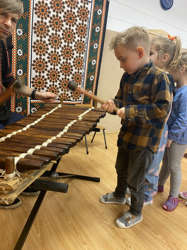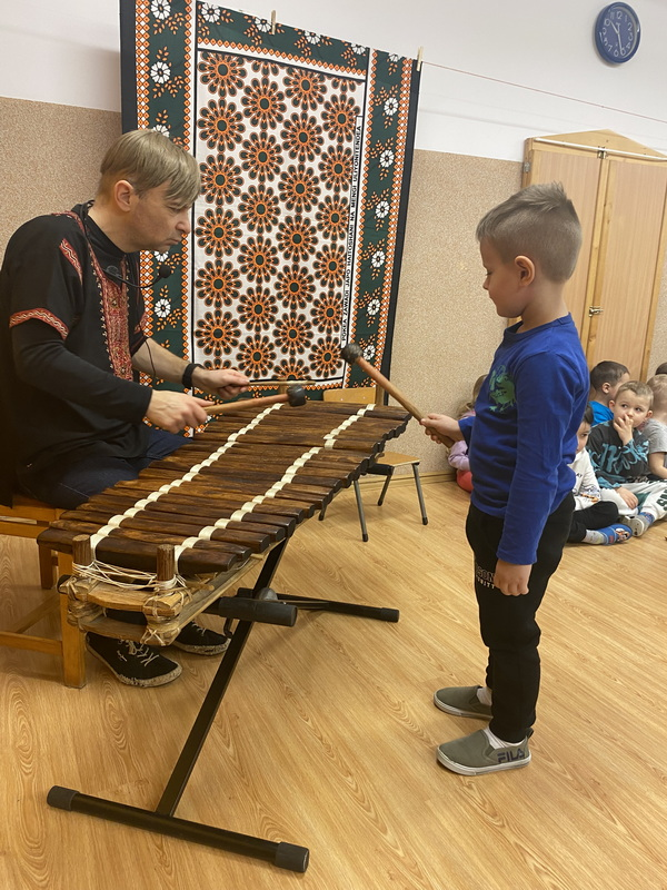 Poznaliśmy instrumenty takie jak bęben szczelinowy, balafon, djembe, happy drum i wiele innych oraz mieliśmy okazję na nich zagrać. To były bardzo ciekawe zajęcia.