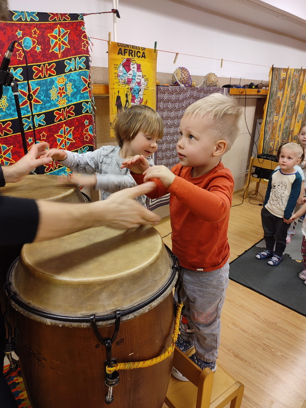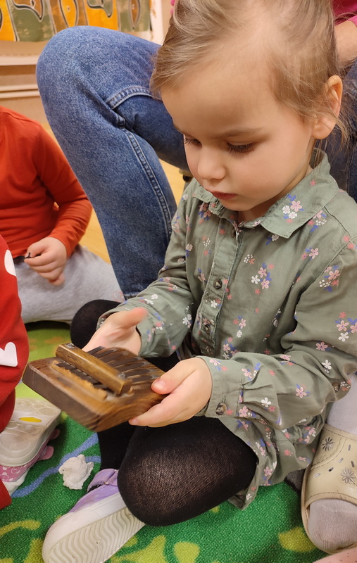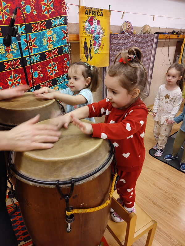 Poznaliśmy brzmienie kalimby-  afrykańskiej opowieści, rury deszczowej oraz darabuki. Gra na bębnach wyzwoliła u dzieci  wiele radości 🎶