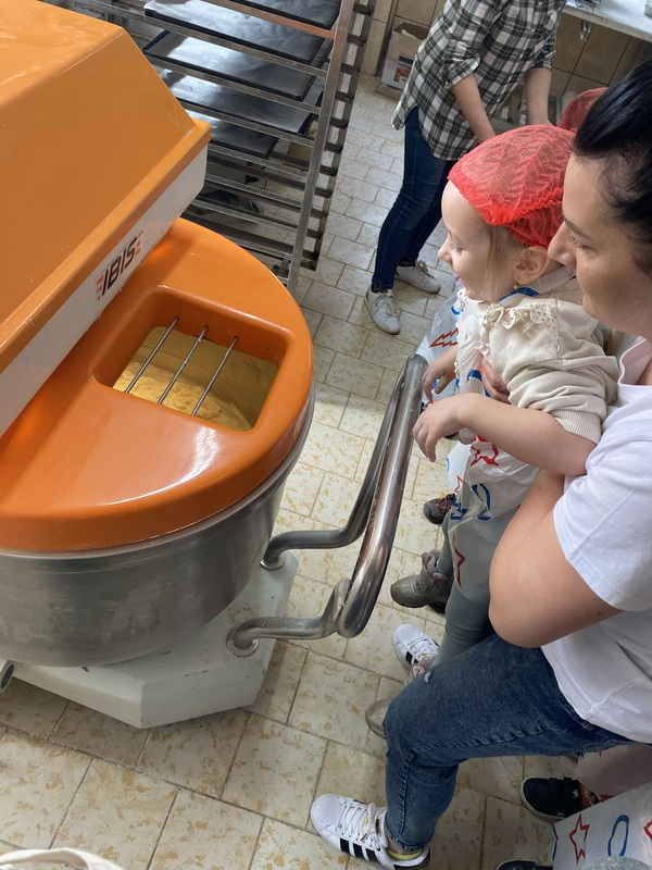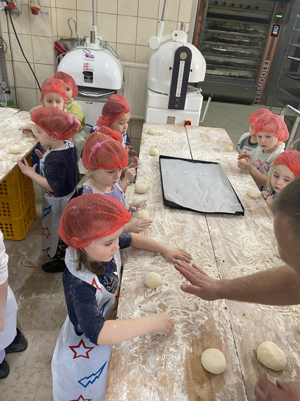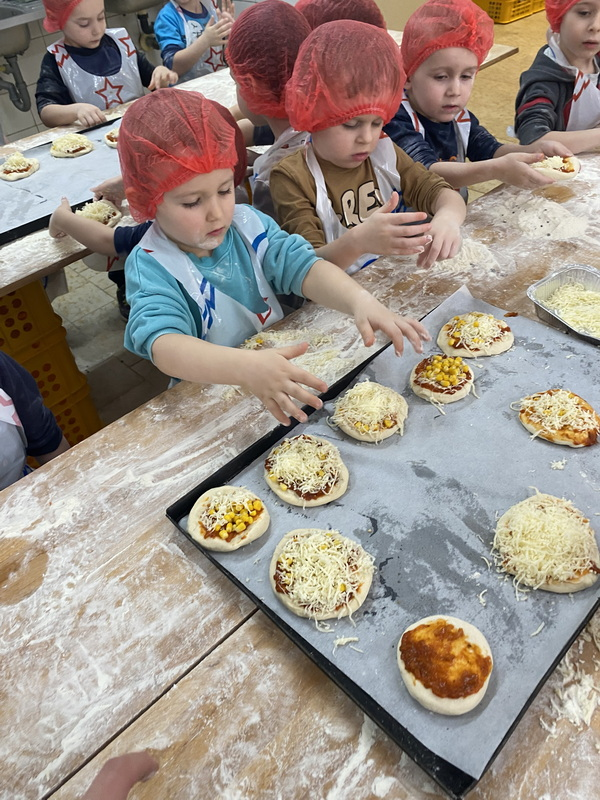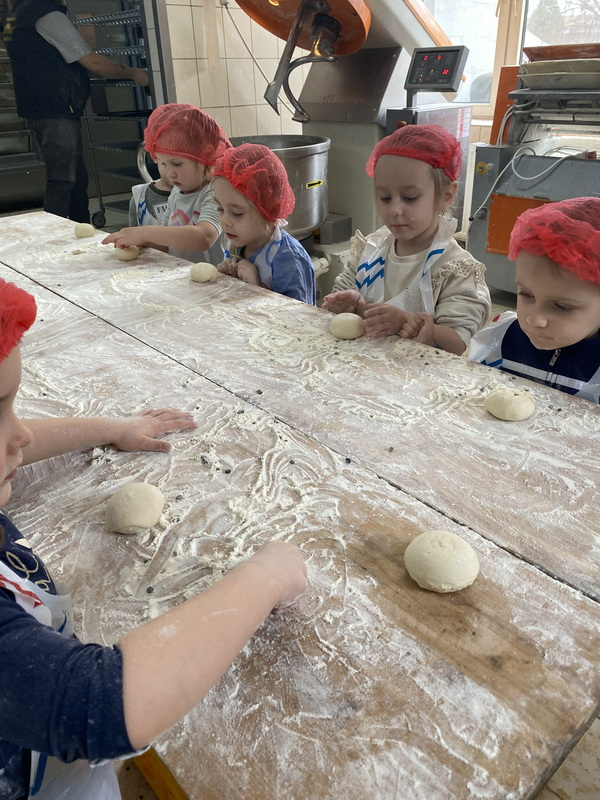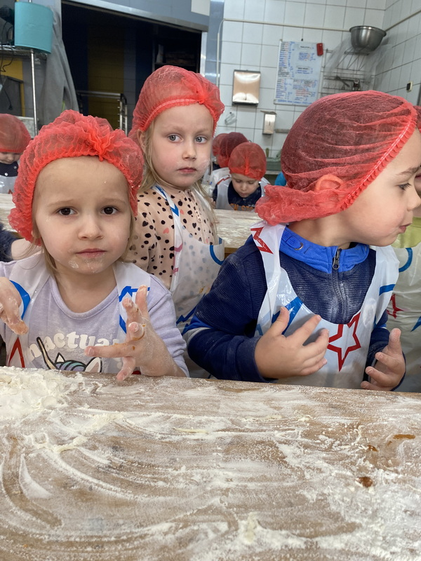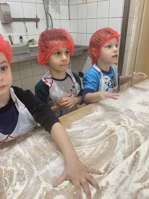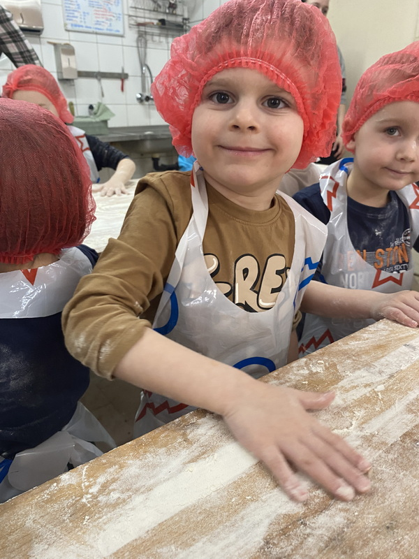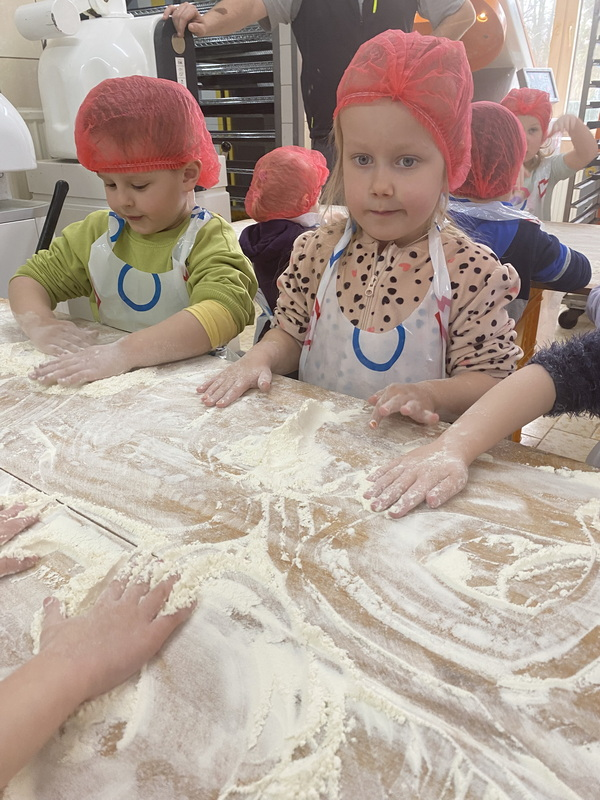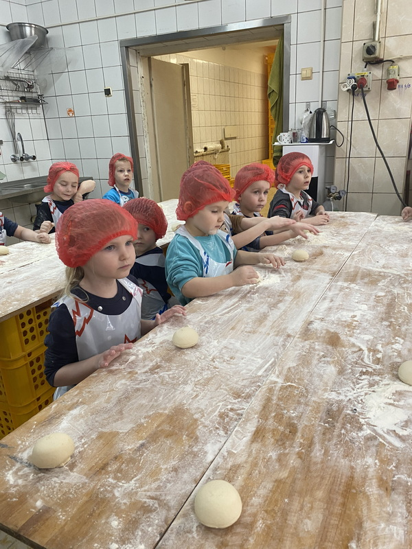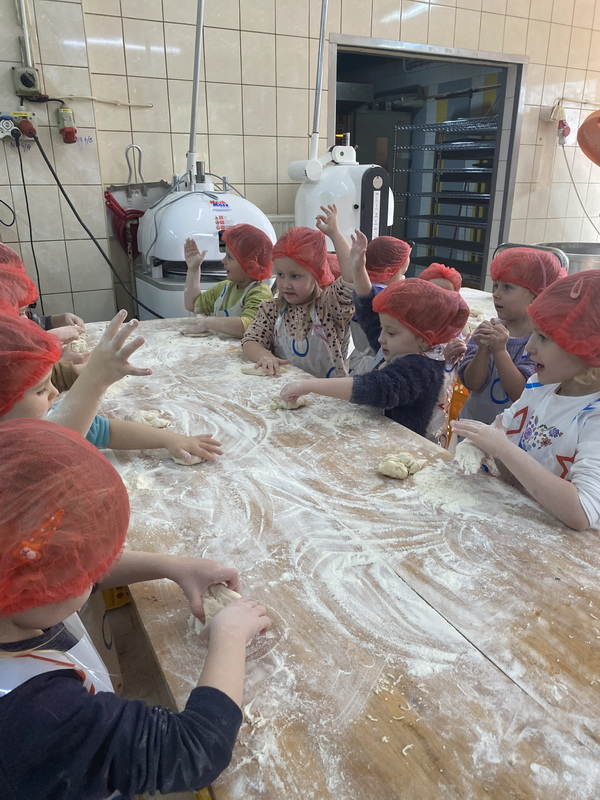 Mieliśmy szansę zapoznać się z zawodem piekarza, zobaczyć wiele maszyn potrzebnych do pracy w tym zawodzie oraz samodzielnie przygotowaliśmy pizzerki, bułeczki z czekoladą i bułeczki z sezamem.