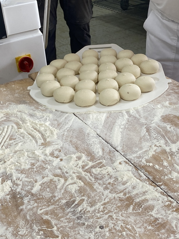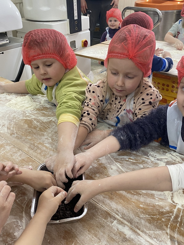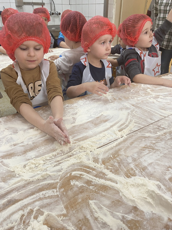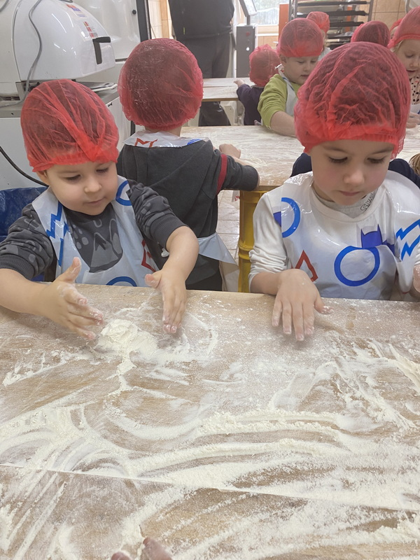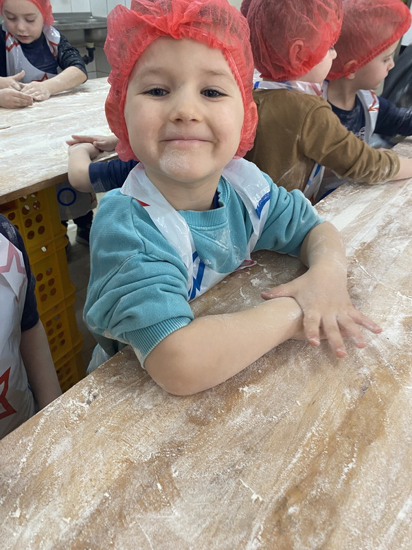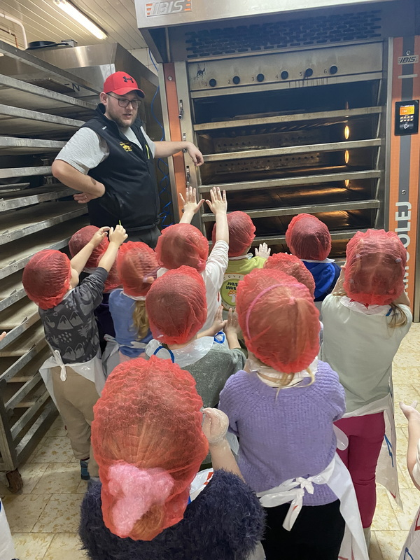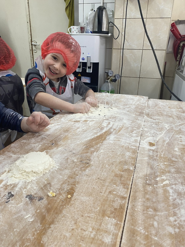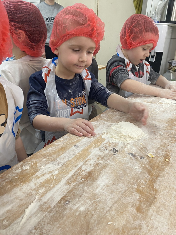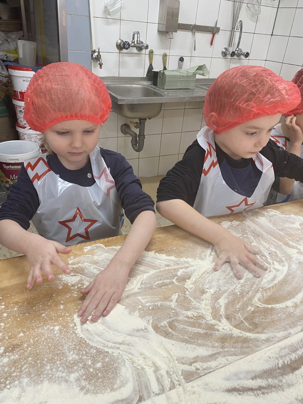 Mieliśmy szansę zapoznać się z zawodem piekarza, zobaczyć wiele maszyn potrzebnych do pracy w tym zawodzie oraz samodzielnie przygotowaliśmy pizzerki, bułeczki z czekoladą i bułeczki z sezamem.