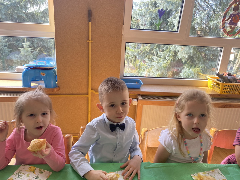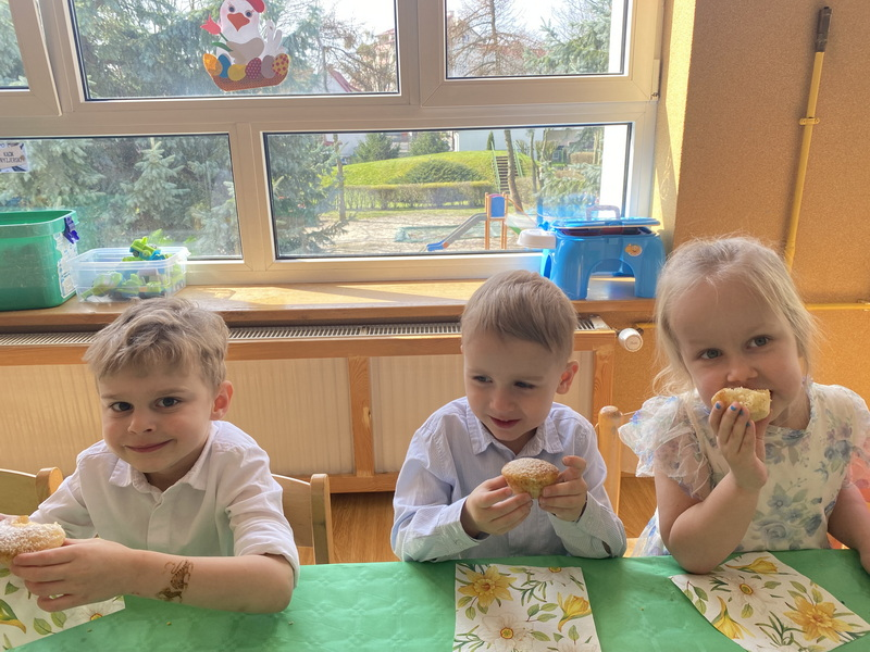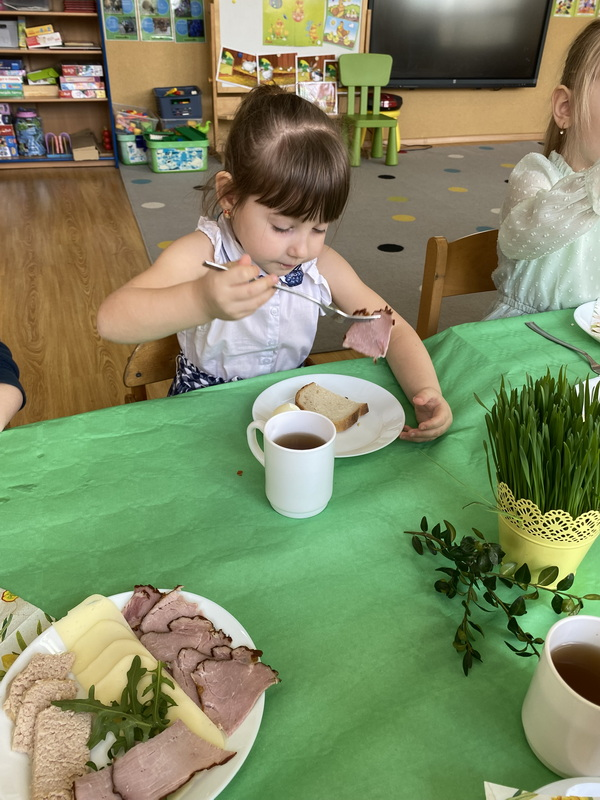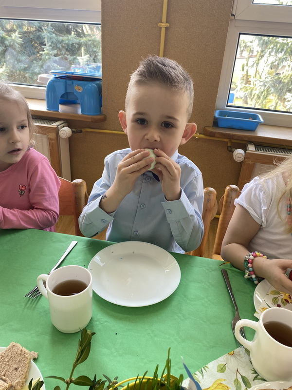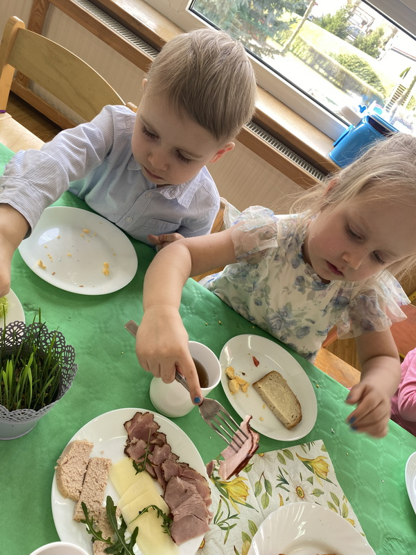 Dzisiejszy dzień rozpoczęliśmy od Śniadania Wielkanocnego, które zostało przygotowane przez Panie z naszej przedszkolnej kuchni.
