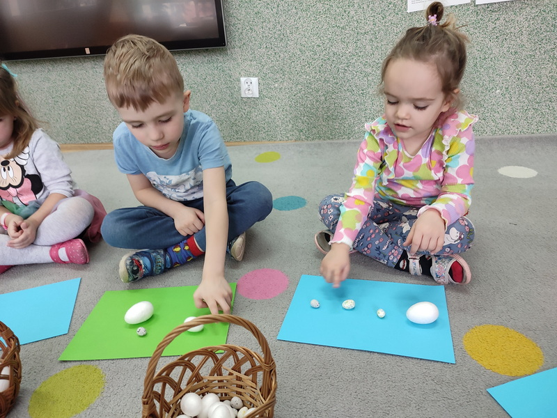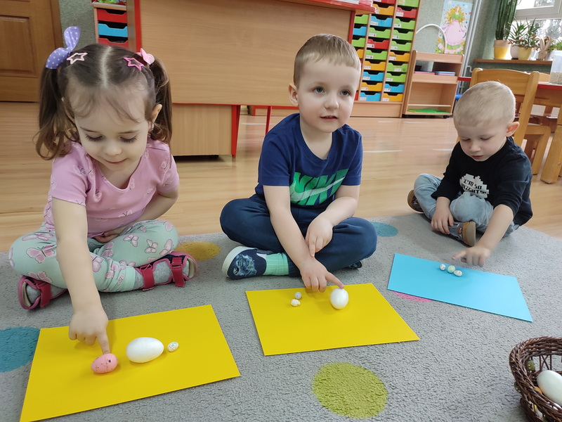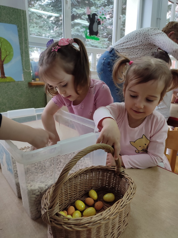 Lubimy zabawy poszukiwawcze, a Wielkanoc zachęca do przeszukiwania zakamarków i znajdowania kolorowych pisanek. Jest to również okazja do nauki liczenia do 3.