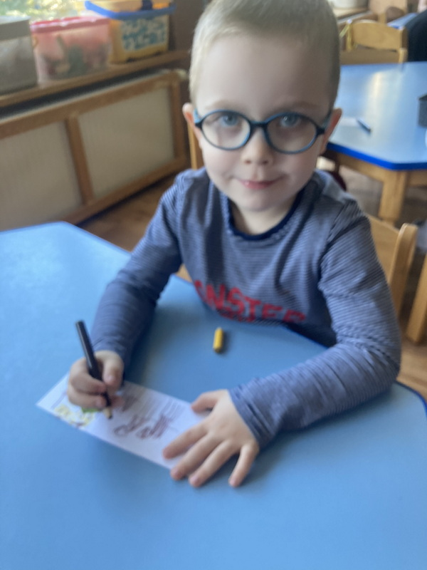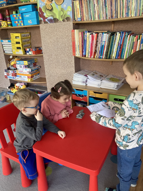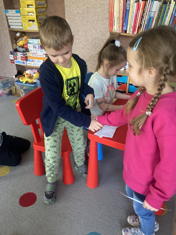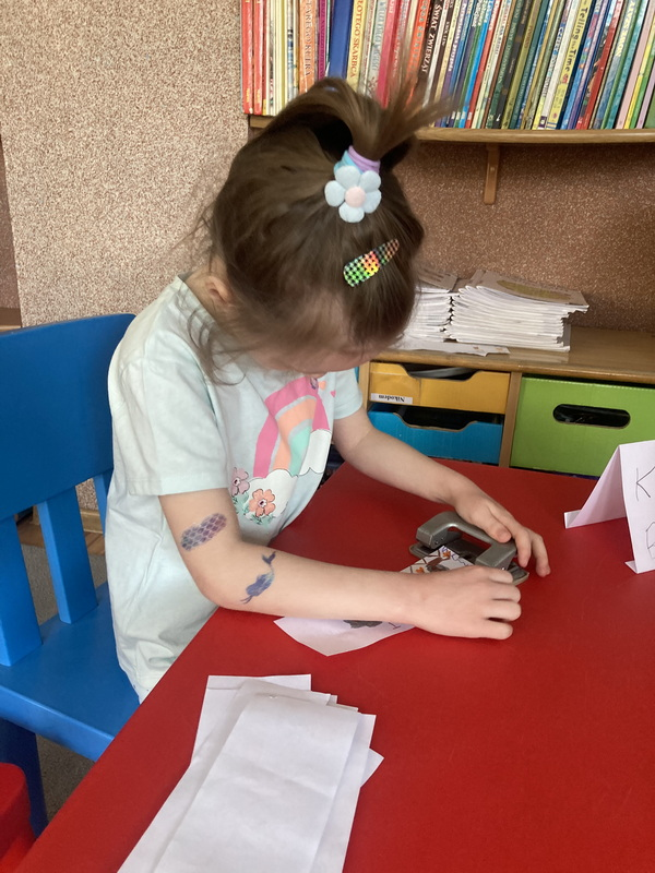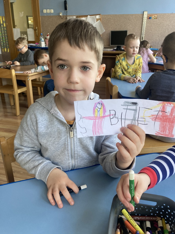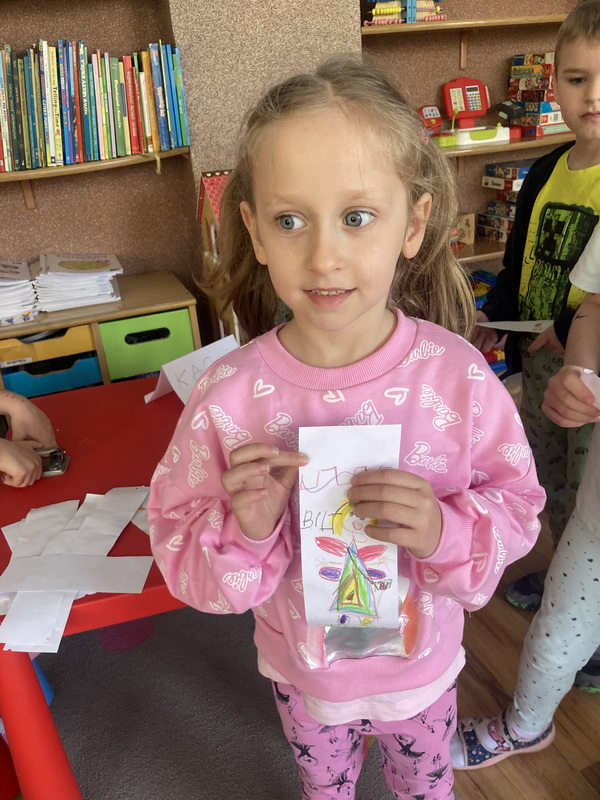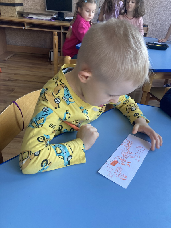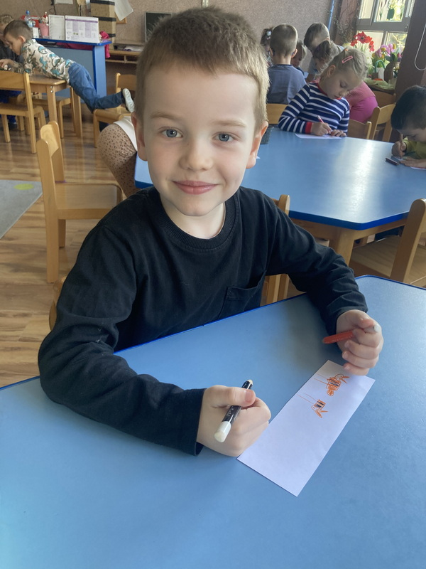 kukiełkami, ale także uczestniczyliśmy w spektaklu z wykorzystaniem pacynek pt. "Legenda o Smoku Wawelskim". Wykonaliśmy kolorowe bilety, które zostały sprawdzone w kasie biletowej.
