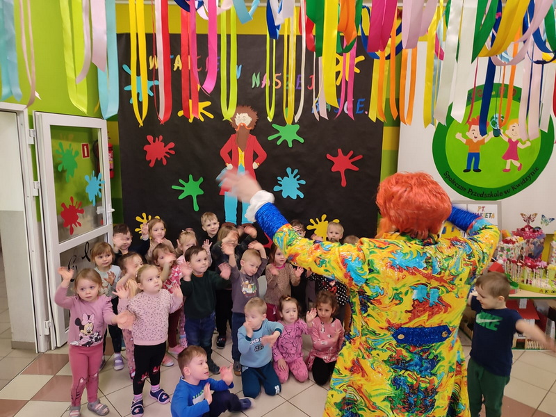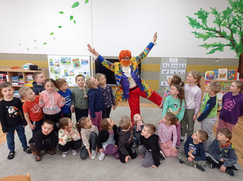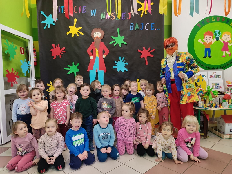 Dziś w naszym przedszkolu w ramach projektu odbyła się lekcja Kleksografii z Panem Kleksem .