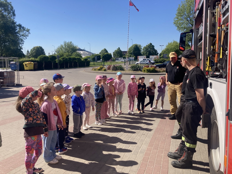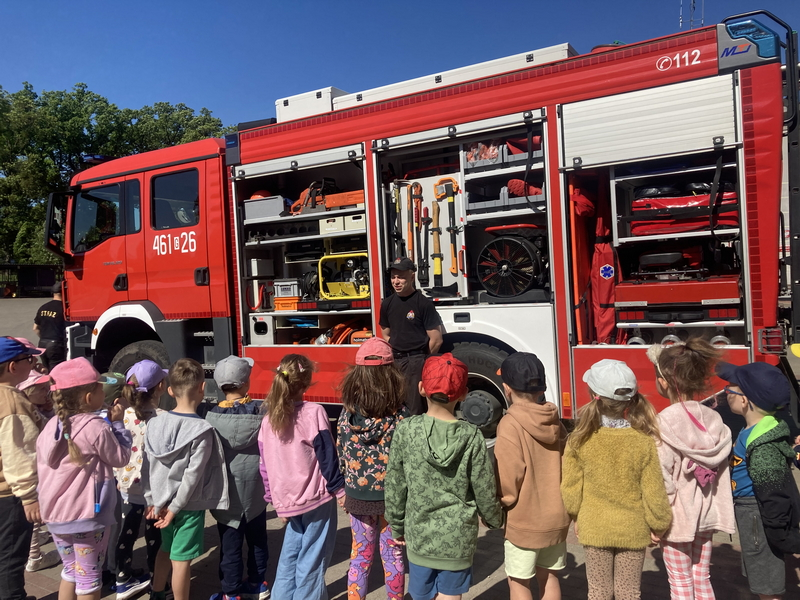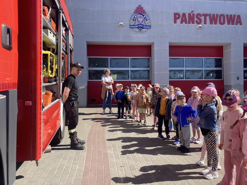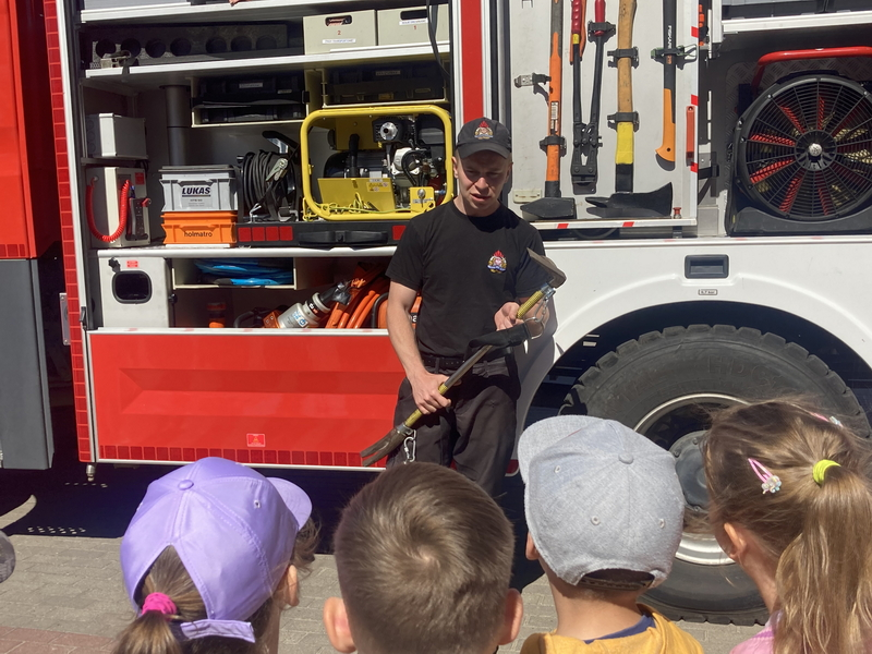 gdzie dowiedzieliśmy się wielu cennych informacji dotyczących pracy Strażaków , obejrzeliśmy potrzebny sprzęt, ubrania, a także pojazdy.