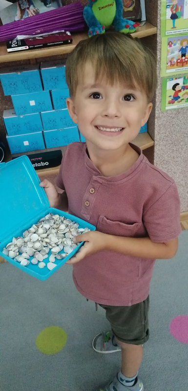 Dzisiaj w przedszkolu wspominaliśmy minione wakacje. Dzieci miały okazję opowiedzieć o swoich przygodach i zaprezentować pamiątki, które przywiozły z różnych miejsc.