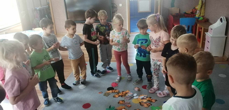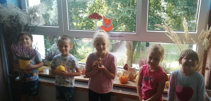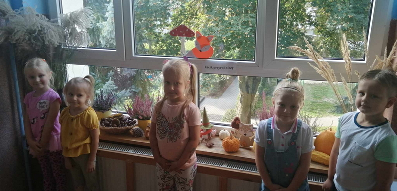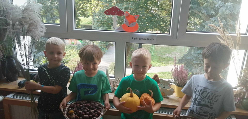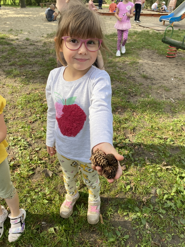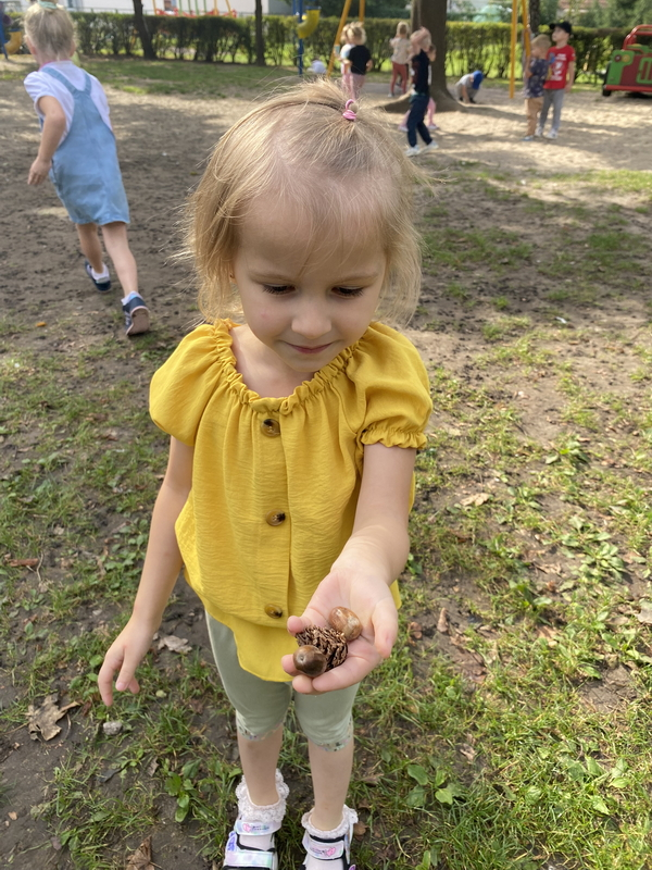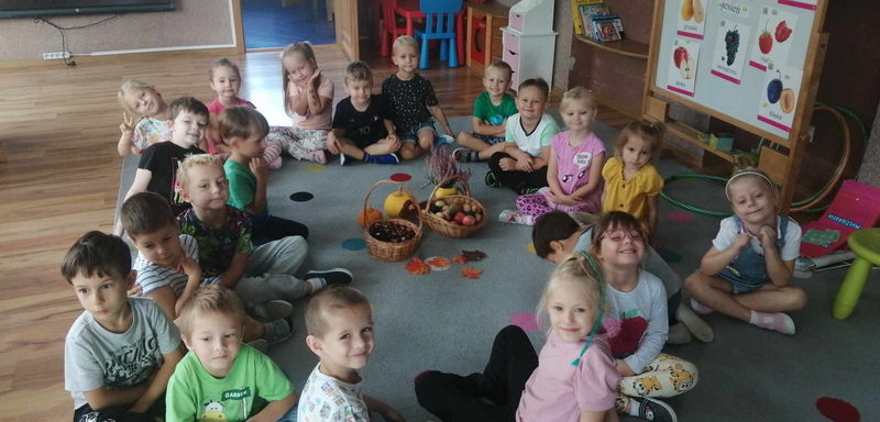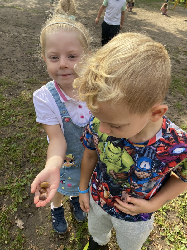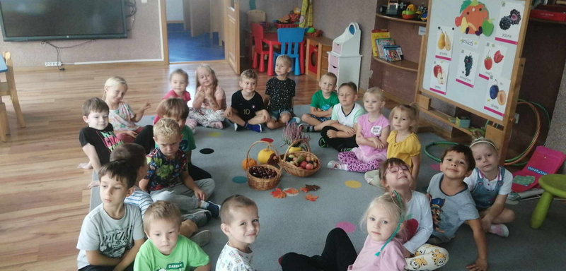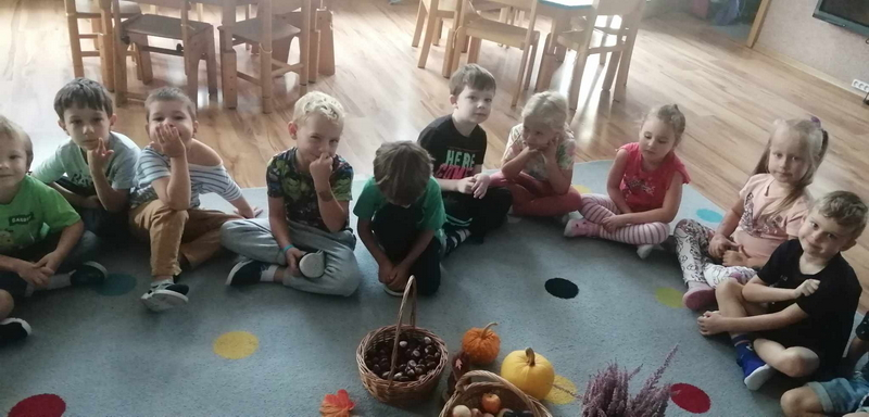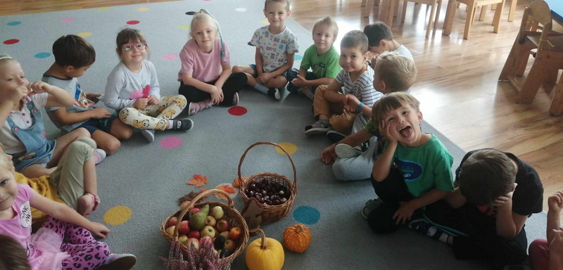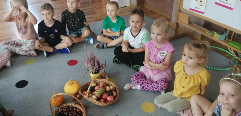 Dziś uczestniczyliśmy w zajęciach, które poświęcone były pięknej i barwnej porze roku. Poznaliśmy jej dary oraz poszukiwaliśmy oznaków jesieni w ogrodzie.