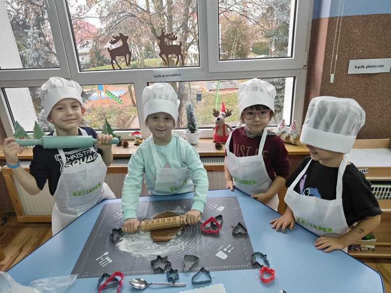 W dniu dzisiejszym upiekliśmy pyszne, świąteczne pierniczki.