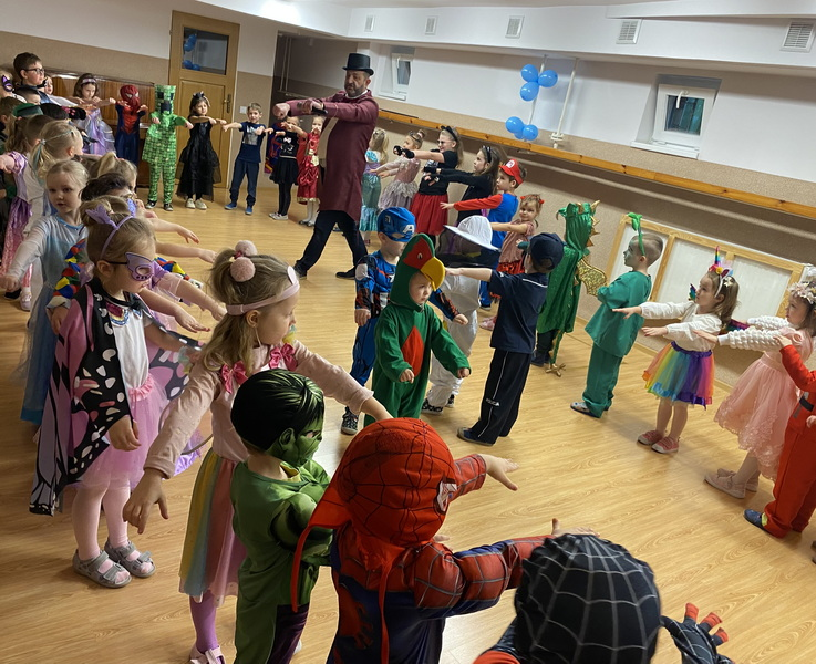 Dziś w naszym przedszkolu odbył się BAL KARNAWAŁOWY! Dzieci przyszły w niesamowitych przebraniach – wśród nich nie zabrakło księżniczek, superbohaterów i zwierzątek.