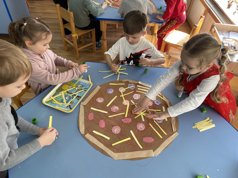 W związku z Międzynarodowym Dniem Pizzy stworzyliśmy grupowe prace plastyczne,