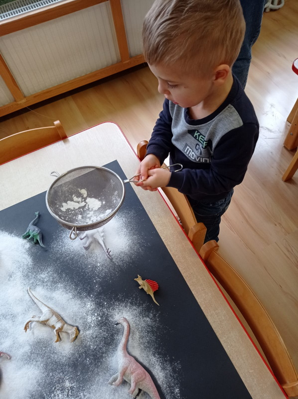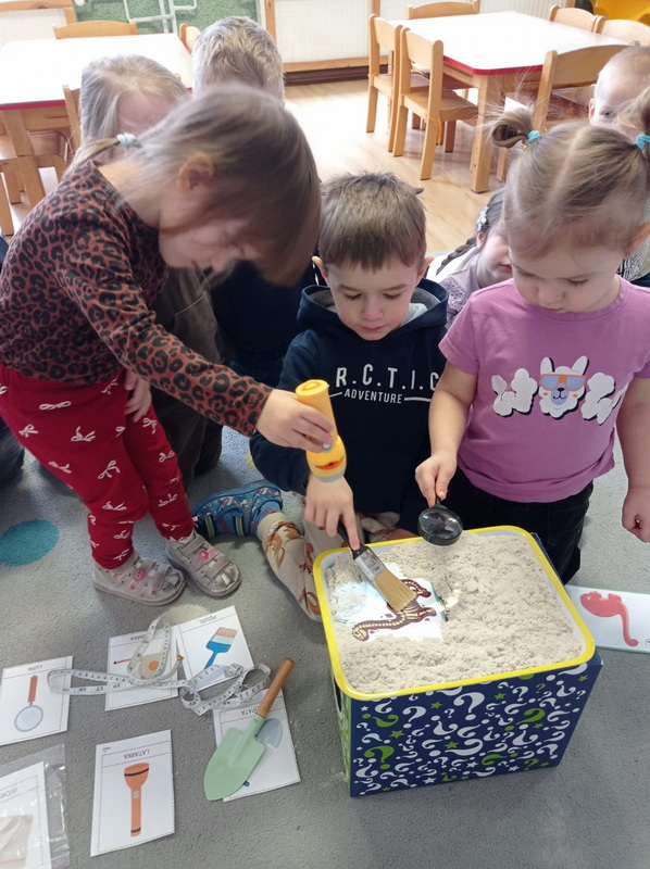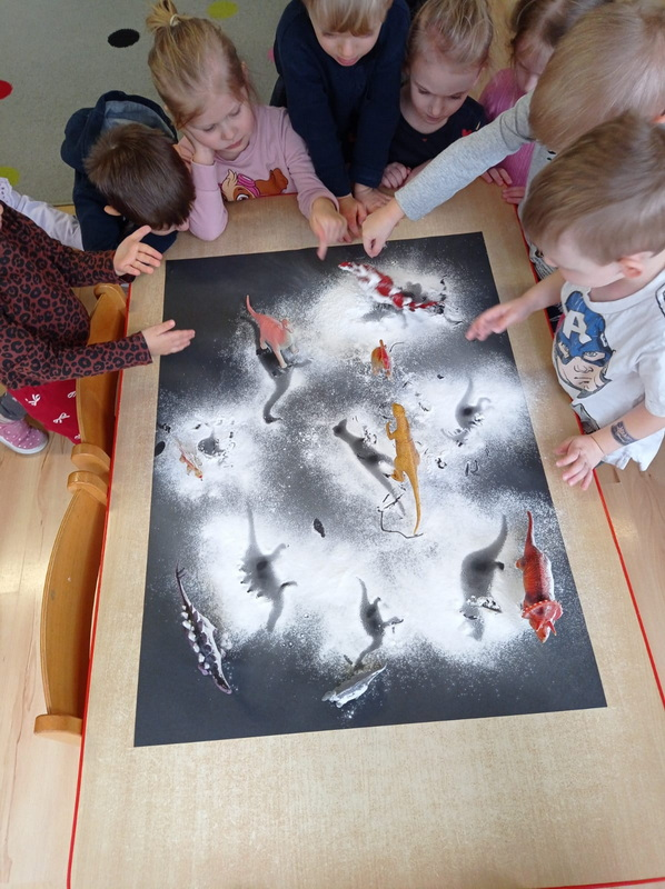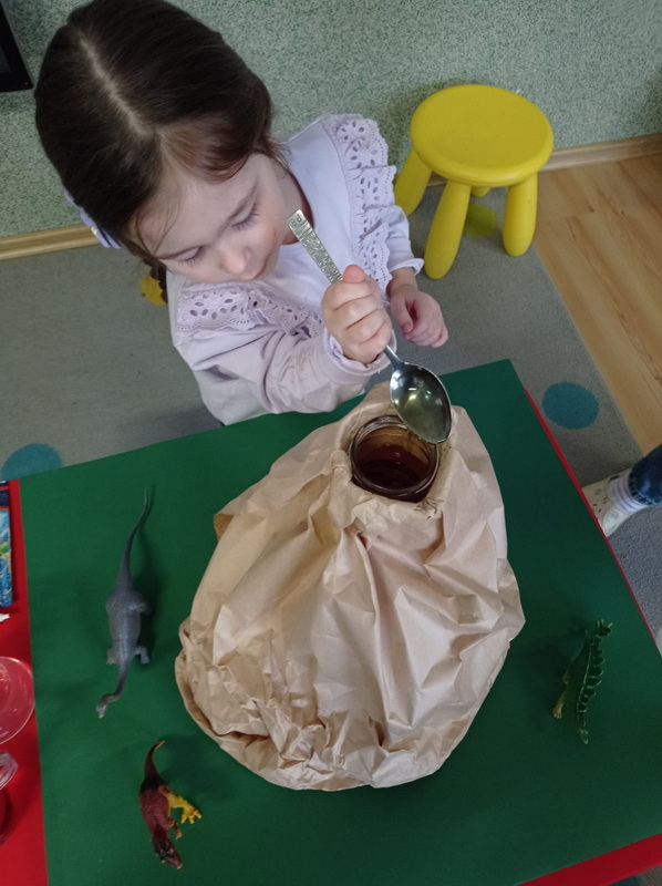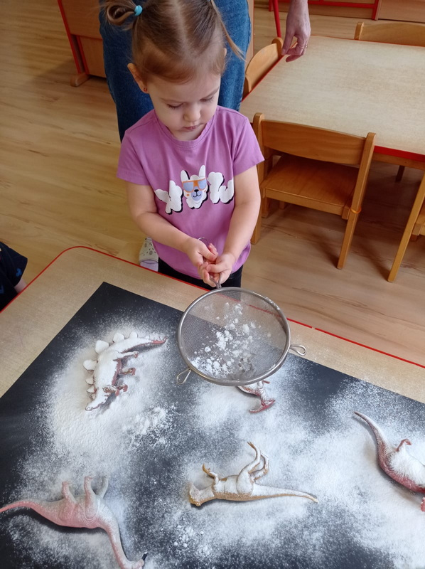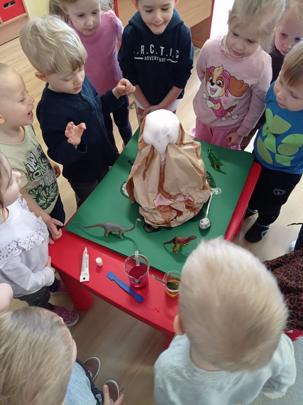 Dowiedziały się, jak żyły dinozaury, jak wyginęły i kim jest paleontolog. Uczestniczyły w wielu ciekawych zabawach i aktywnościach związanych z tematem.