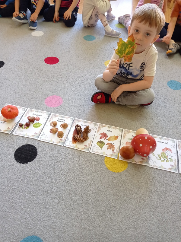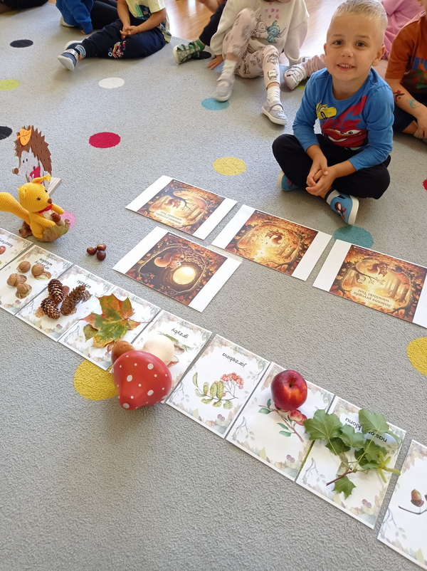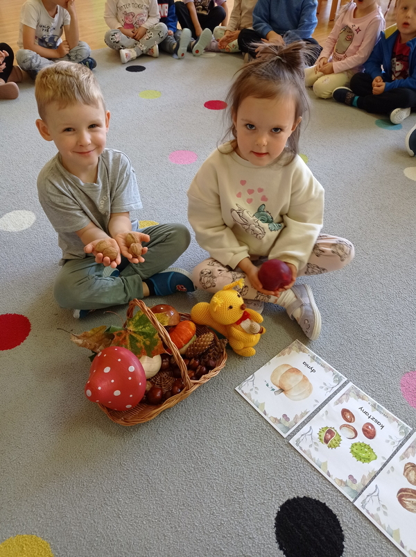 Organizowane były zabawy o tematyce jesiennej, poprzez które dzieci przyswoiły sobie wiadomości o rozpoczynającej się właśnie porze roku.