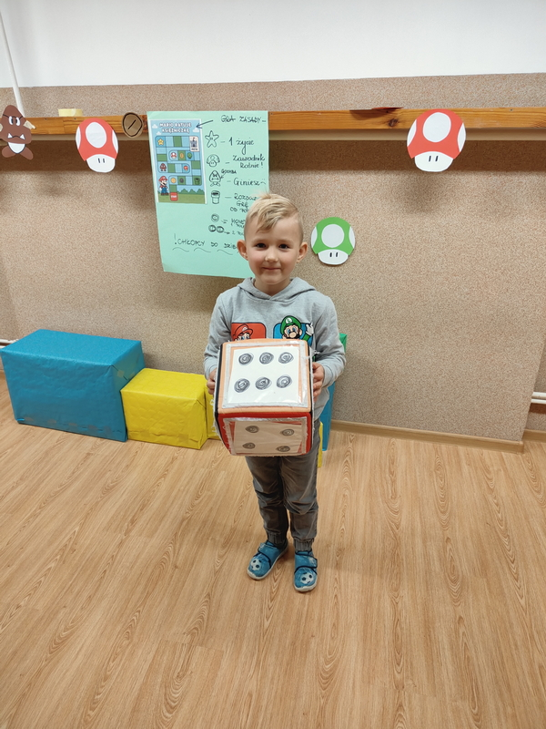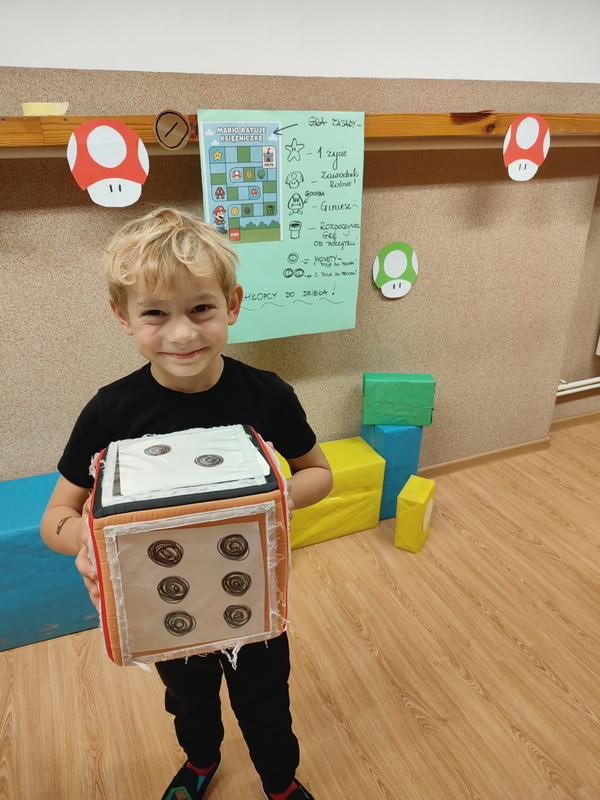 Chłopcy przenieśli się do świata gry i rywalizowali w planszowej wersji przygód Mario, gdzie liczyła się spryt, refleks i dobra zabawa .