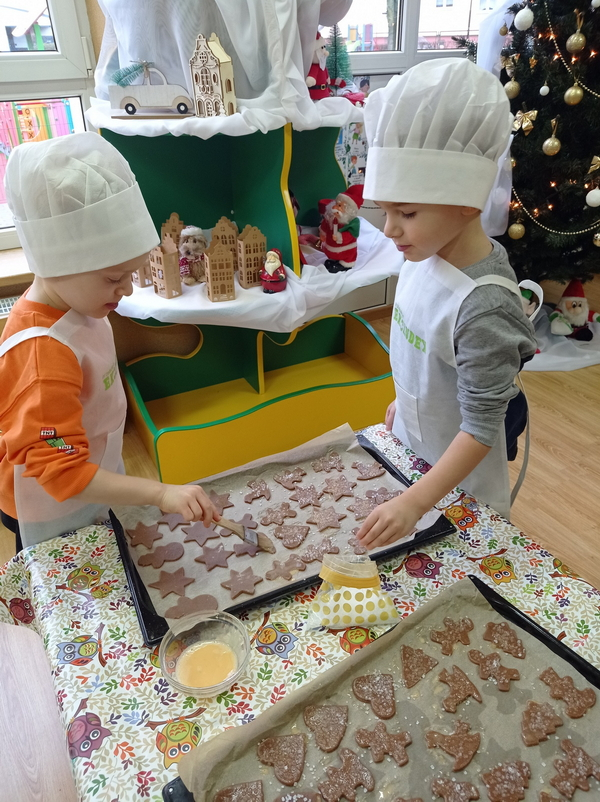 Przedszkolaki zgodnie z przedświąteczną tradycją piekły oraz ozdabiały świąteczne pierniczki.