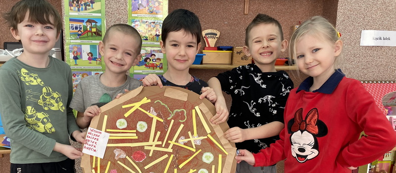 W związku z Międzynarodowym Dniem Pizzy stworzyliśmy grupowe prace plastyczne,