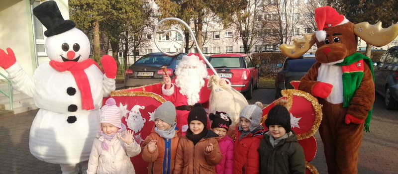 Dzisiejszy dzień był pełen świątecznych wrażenień. Do naszego przedszkola na saniach przybył Mikołaj wraz z pomocnikami.