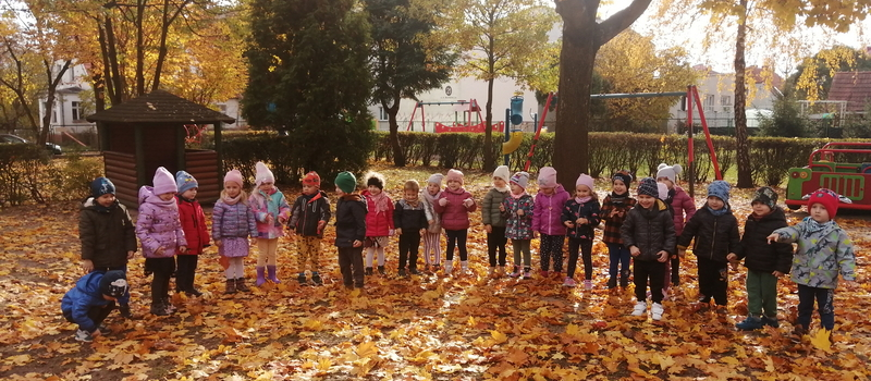 Piękna, słoneczna pogoda towarzyszyła nam podczas dzisiejszego spaceru. Wiele radości sprawiła nam zabawa pod barwnymi klonami.