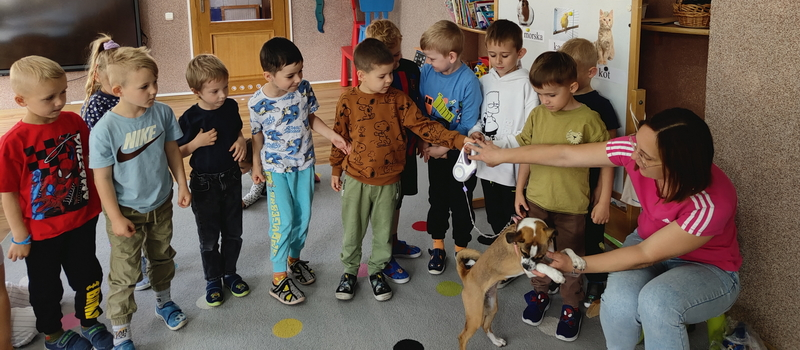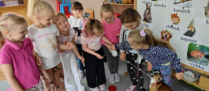 W ramach realizacji tematu kompleksowego „Moje zwierzątko" odwiedziła nas pani Magda, mama Marcysi z z ich uroczym pieskiem- Nelą.