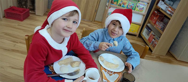W dniu dzisiejszym nasza przedszkolna grupa zasiadła do wspólnej wigilii.