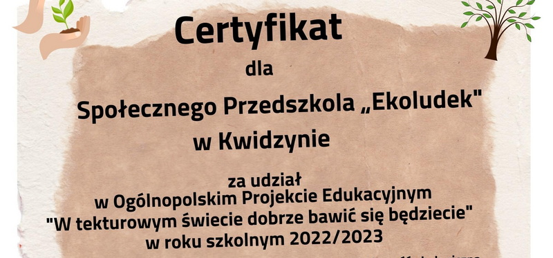 INFORMACJA: 11.05.2023 - CERTYFIKAT